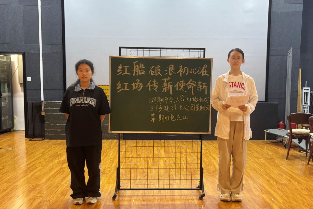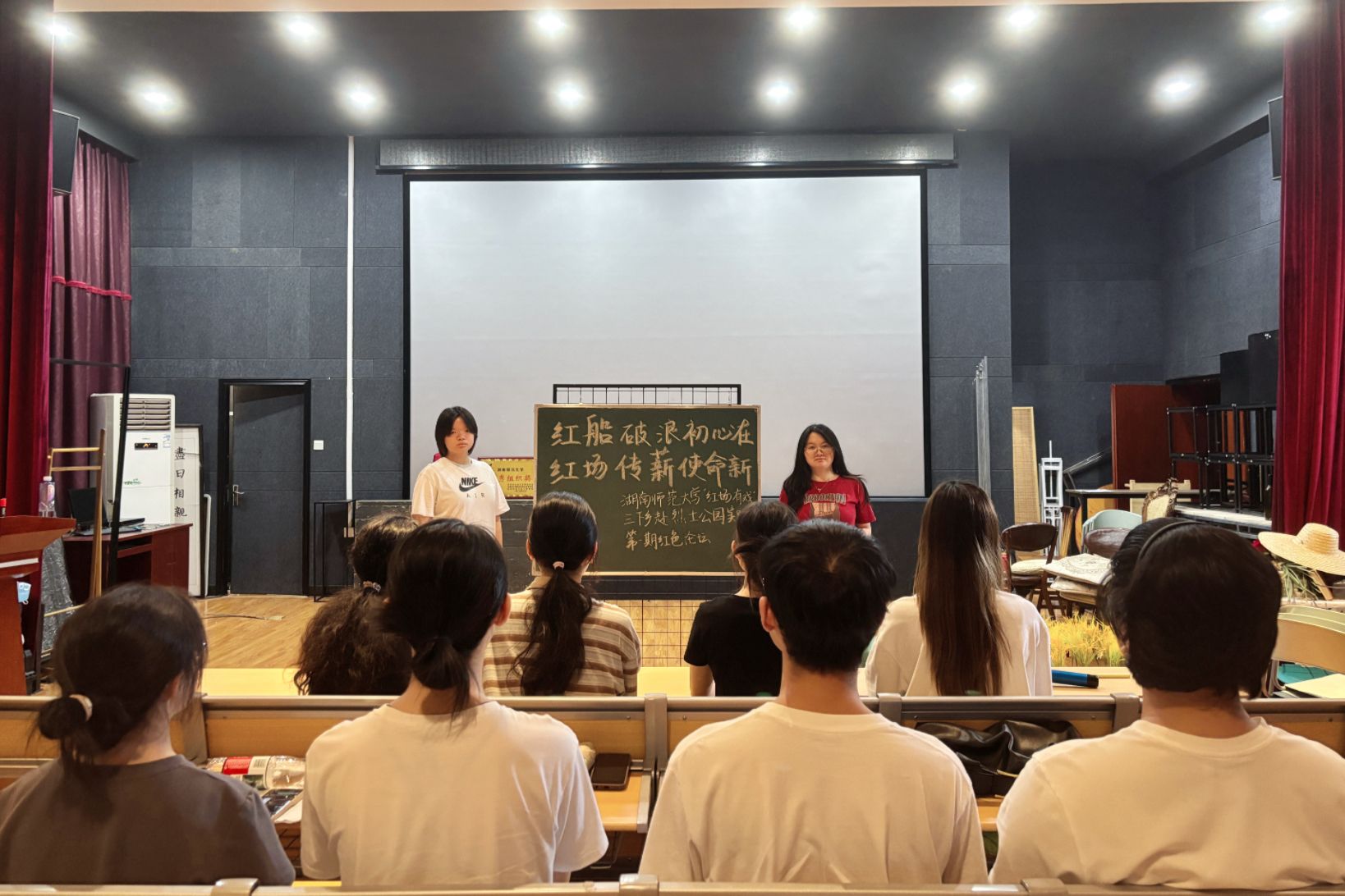 实践团组织了红色故事分享会和红色戏剧片段演绎活动。活动剧目包括经典革命故事《白毛女》和新时代红色故事《稻浪长歌》《芙蓉国里尽朝晖》。参与演出的同学和现场观众进行面对面的交流,共同分享对于角色塑造、主题理解以及观后体验的心得。活动第二部分围绕“红色文化开发研究”展开研讨。成员们聚焦“红色文化与乡村教育融合”、“红色文化资源开发与利用”等核心议题进行讨论,表达了“创新红色沉浸式戏剧”“加强观众参与互动”等想法,展现了年轻人对红色文化传承的新思路。