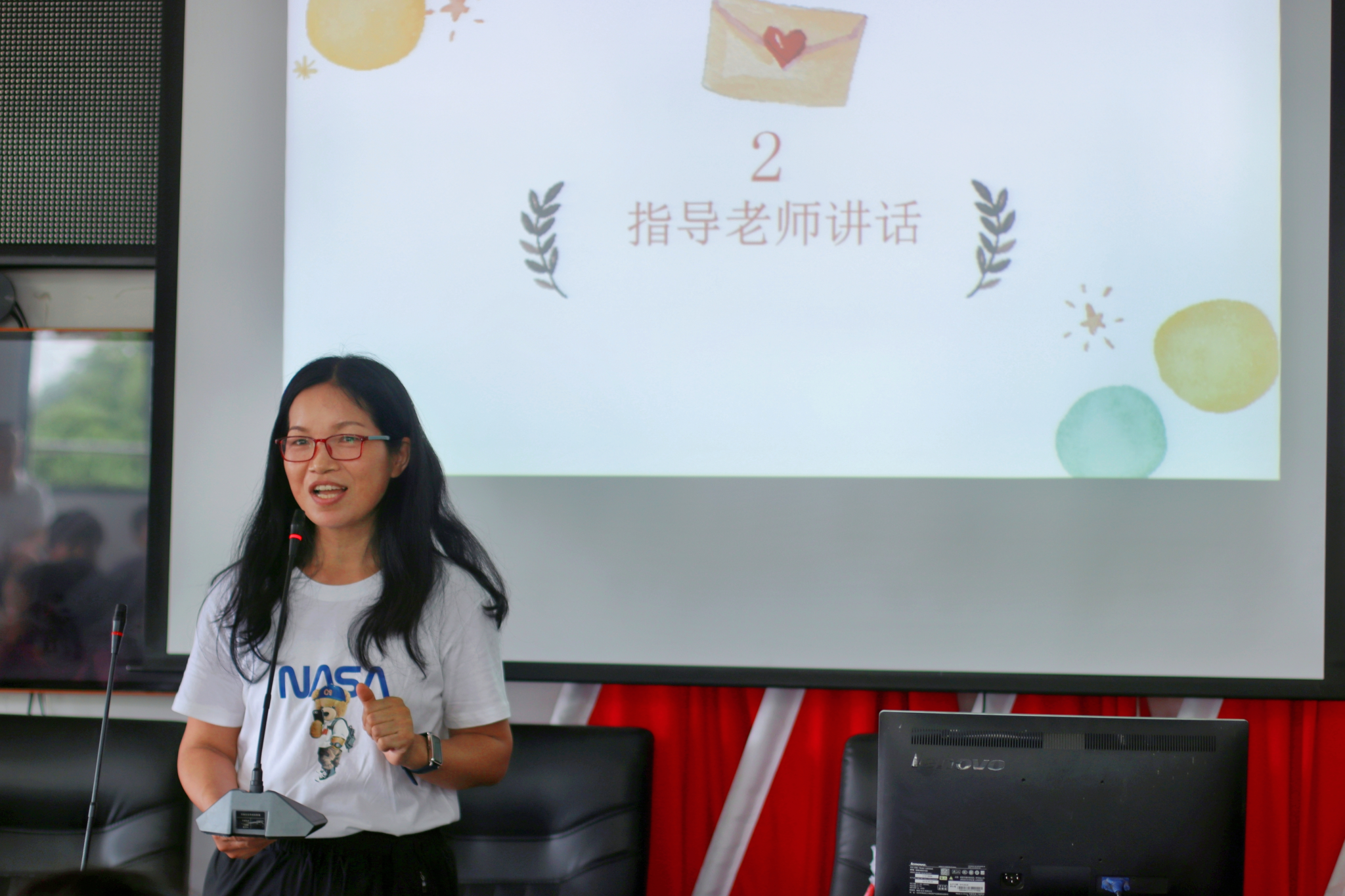 主持人播放实践队员剪辑的短视频,带领学生回顾了夏令营的课程内容与成长收获。郭小英作进一步总结,她从“支教老师教得如何”、“学生学得如何”、“我们给予学生何种希望”三个方面出发,鼓励学生们进行自我反思、学会感恩,引导他们培养探索精神和语言表达能力。同时,她表示会积极听取学生们的建议,促进实践队员改善教学方案与教学技能。
