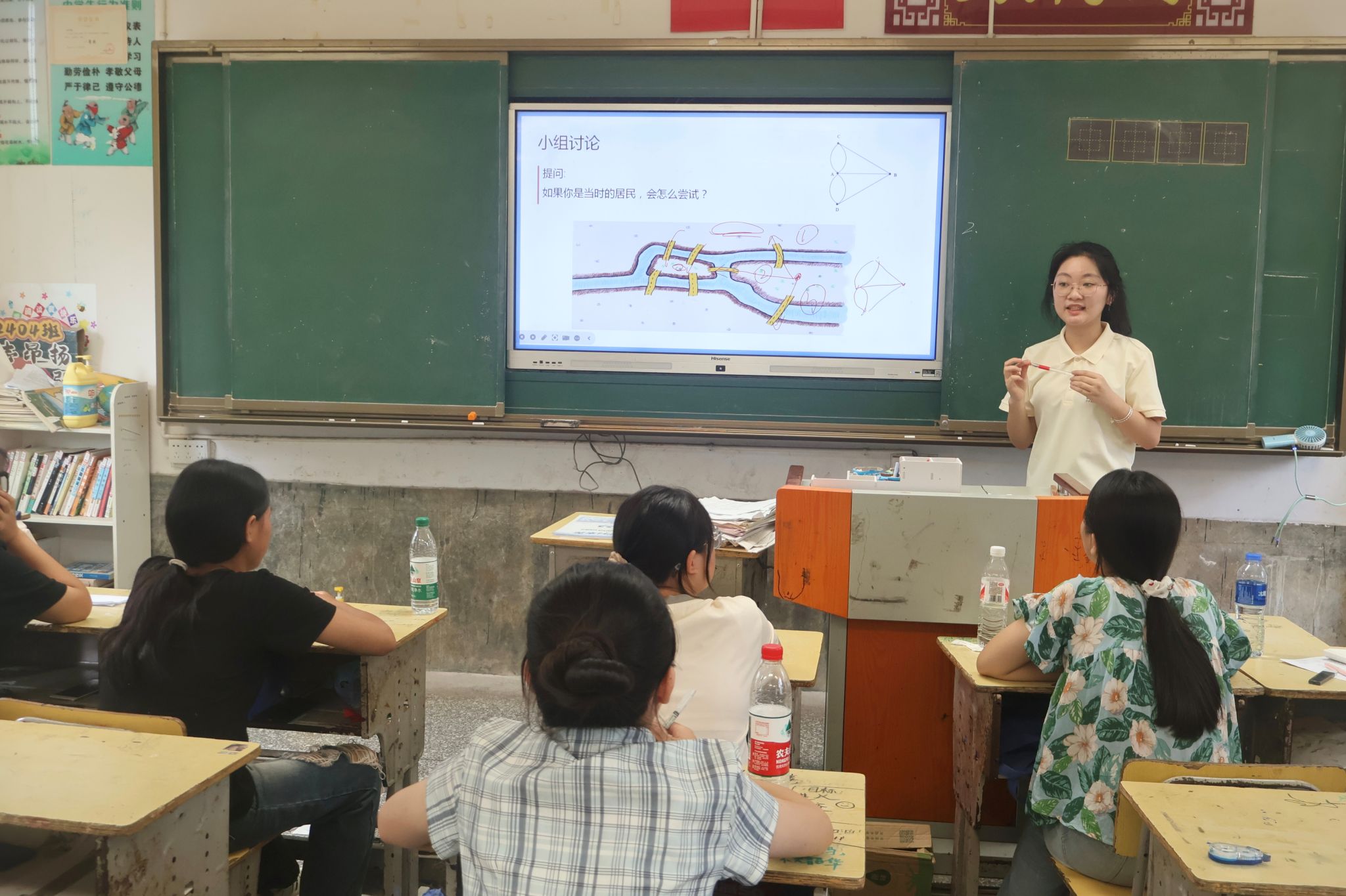 (通讯员 贺洋 刘浩宁)为培养乡村学生的逻辑思维与空间想象力,提升他们的问题解决能力,7月20日上午,湖南师范大学数学与统计学院“资畔云志”暑期社会实践团(以下简称“实践团”)于邵阳县塘田市镇初级中学开展了“一笔画”趣味数学课程。此次课程由实践团成员担任授课教师,面向七、八年级学生。