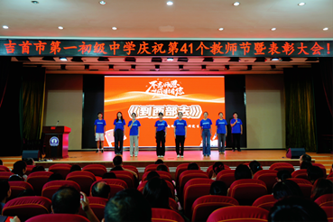 据悉,12日下午,吉首市第一初级中学举行了第四十一个教师节庆祝大会,研支团吉首分队演唱歌曲《到西部去》。学校领导、教师代表共300余人观看表演。