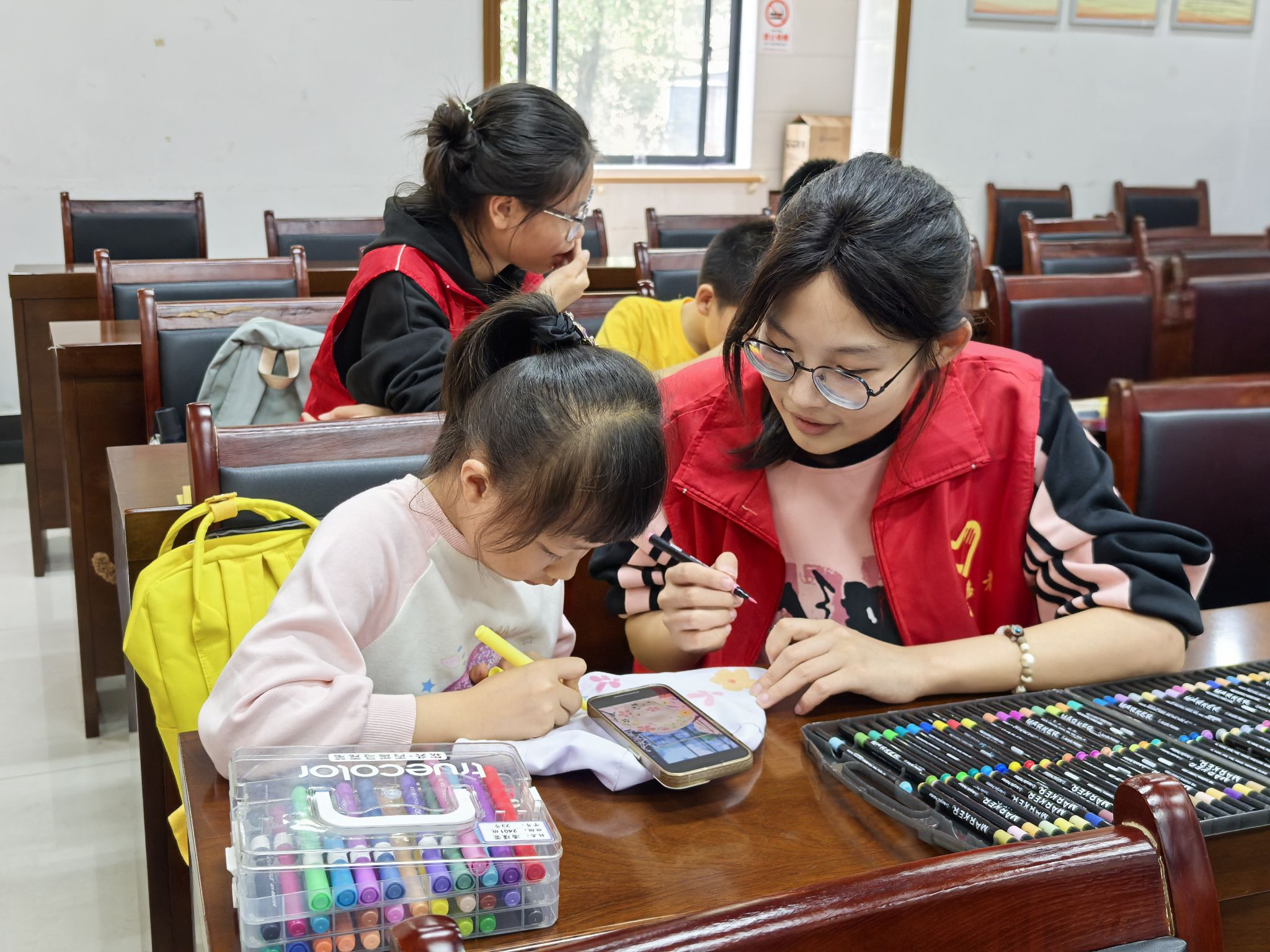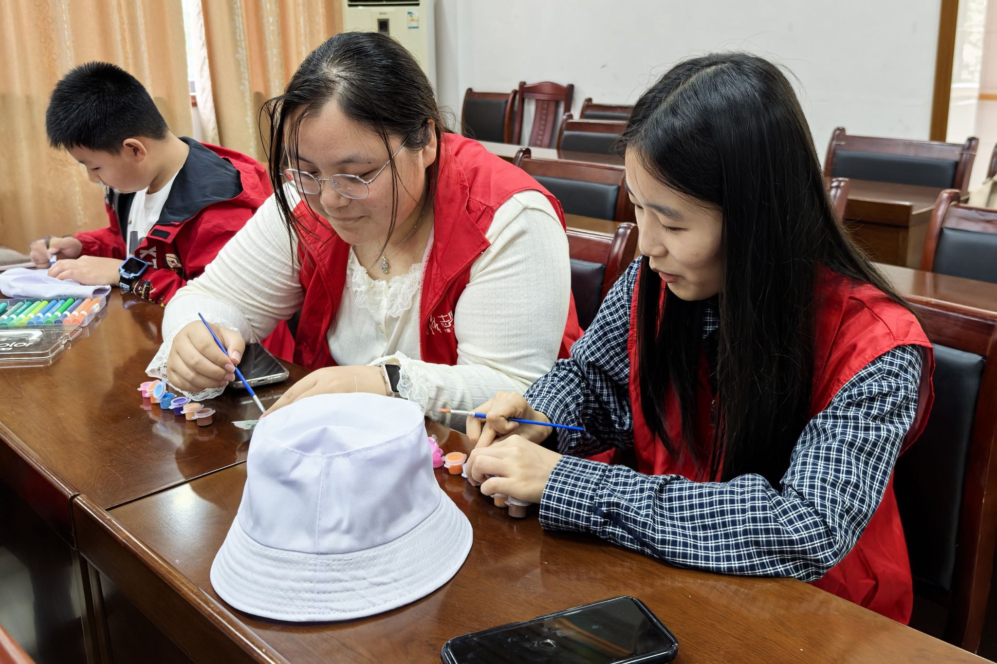 在环保宣讲环节,志愿者结合具体案例,围绕节水节电、垃圾分类等日常生活行为,为青少年讲解绿色生活知识,阐述环境保护与个人生活之间的联系,以增强其积极参与环保行动的自觉意识。宣讲结束后,志愿者指导青少年在帽子上绘制树木、云朵、飞鸟等自然元素,鼓励他们将美好家园的愿景与环保理念融入创作之中。活动过程中,志愿者与青少年持续交流,在解答疑问的同时,进一步倡导“爱护环境、从我做起”,使环保理念通过艺术形式得以传递。
