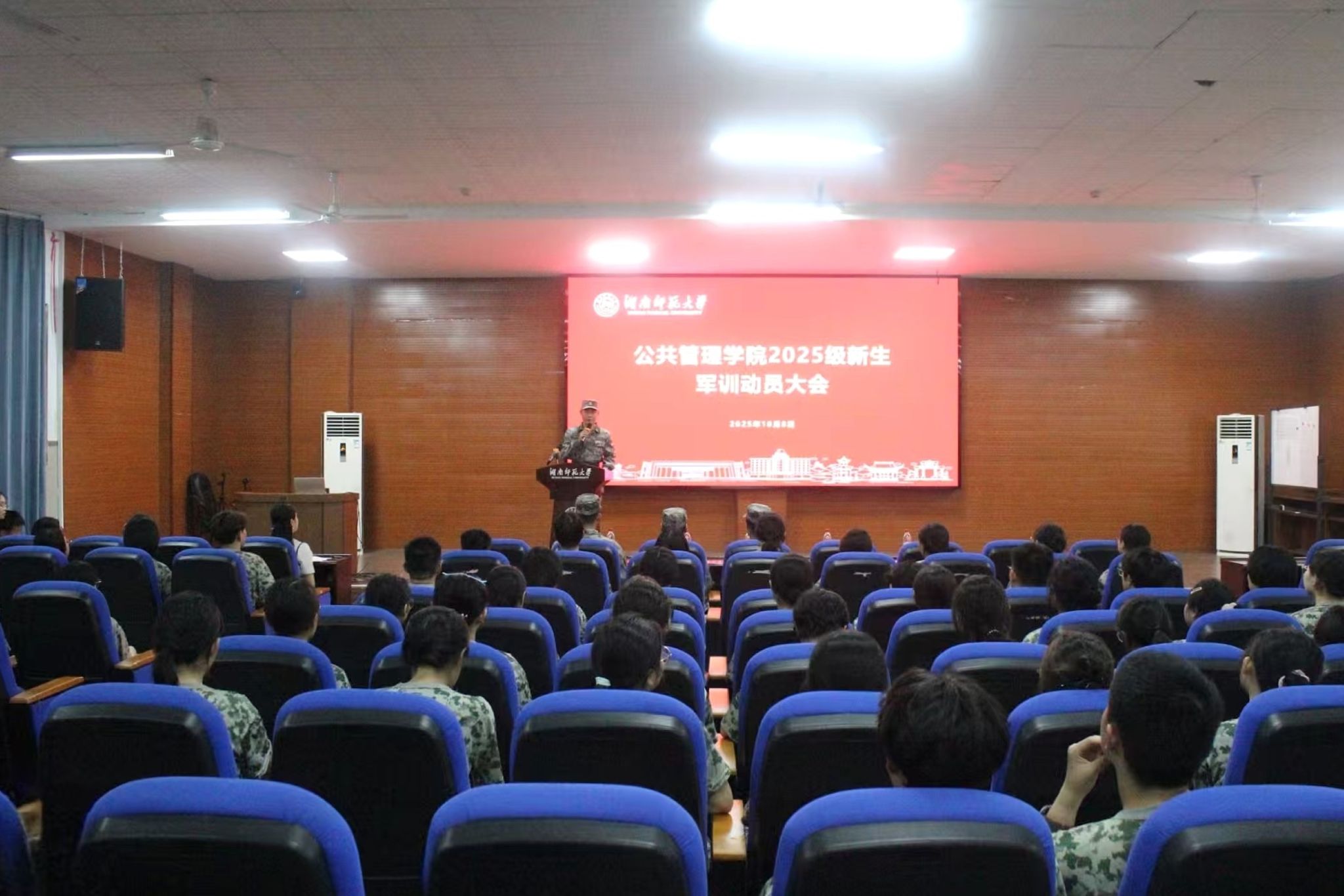 (通讯员 谭欣雨 赵露潞 周涵韵)为增强新生国防意识、锤炼意志品质,确保军训工作顺利开展,10月8日下午,公共管理学院(以下简称“公管院”)于张公岭校区报告厅举行2025级新生军训动员大会。活动由2025级辅导员罗洋主持,公管院党委副书记陈丽荣、公管院各年级辅导员、全体教官及2025级全体新生参加大会。