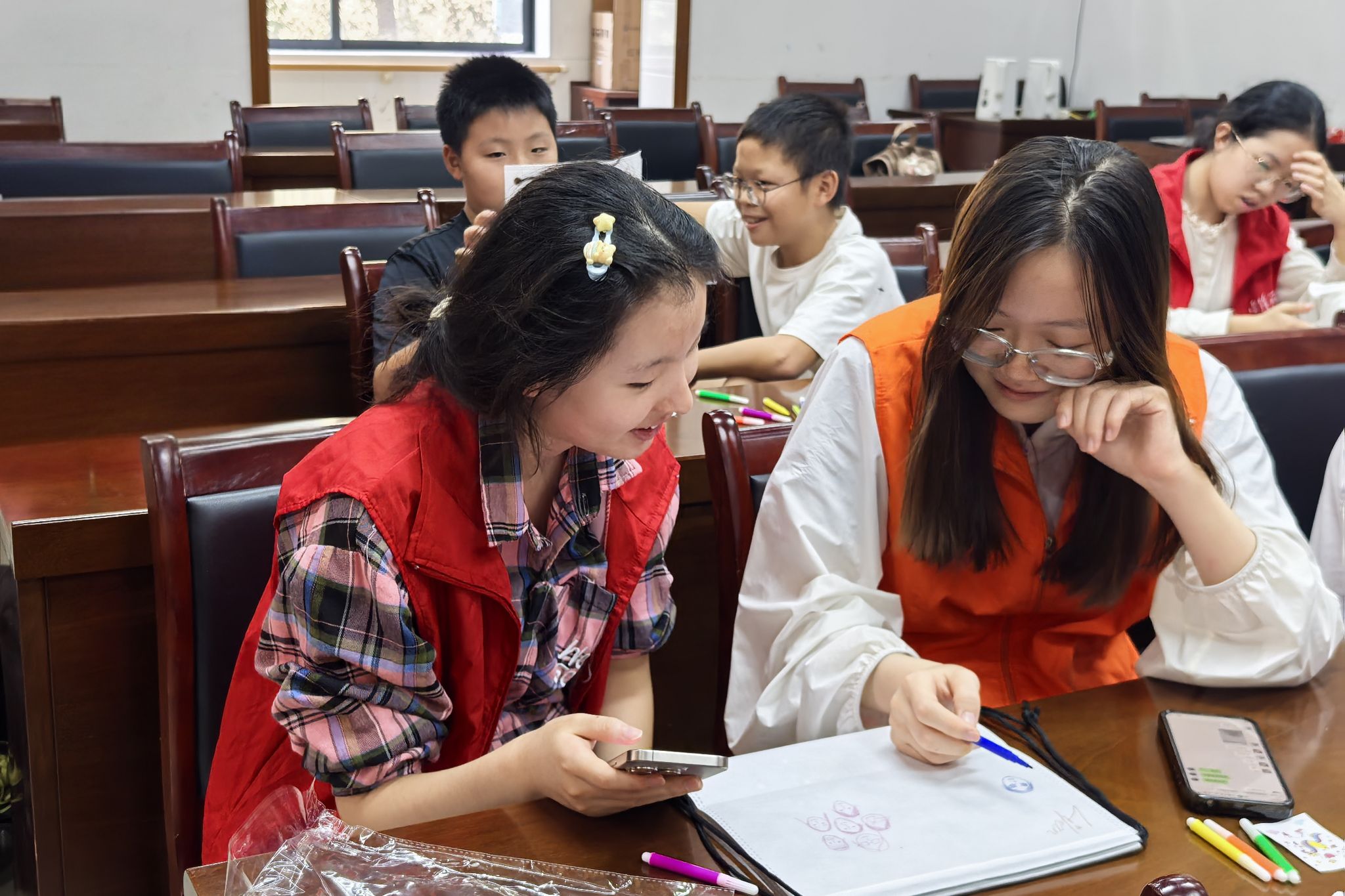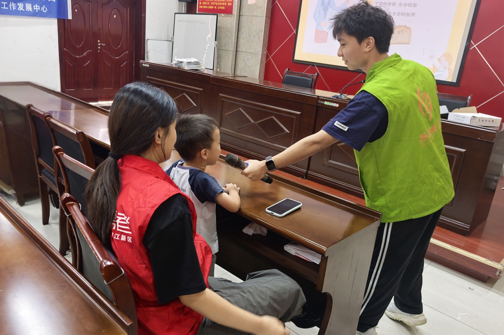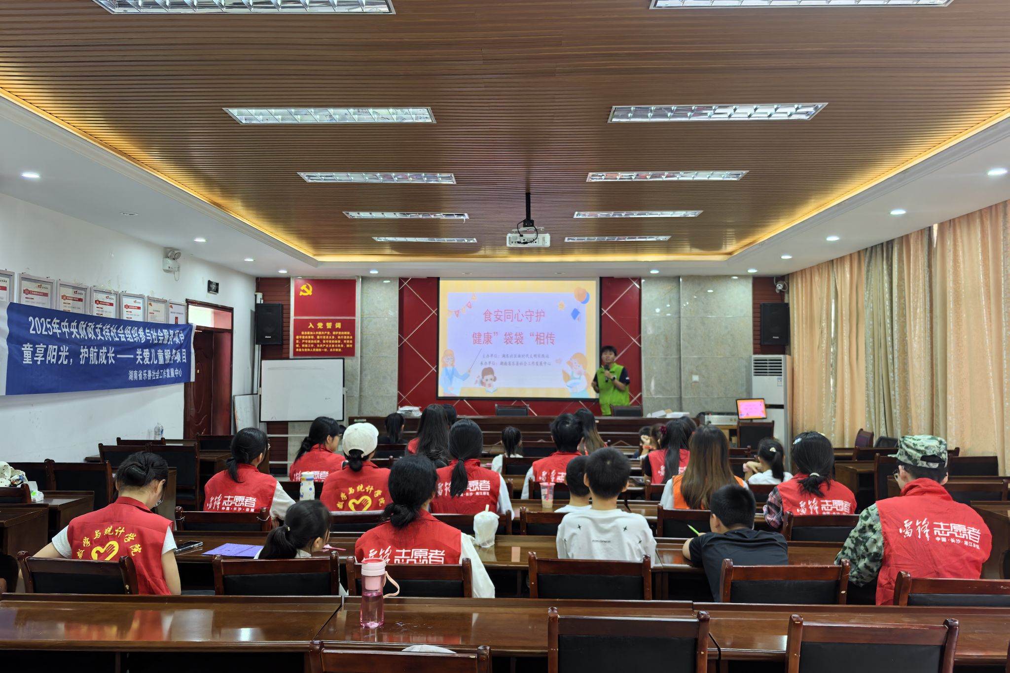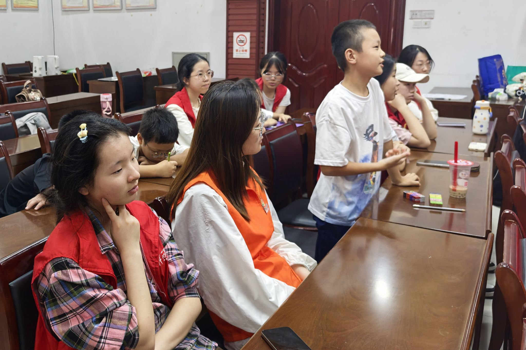 志愿者和小朋友们专心听主讲人进行主题宣讲