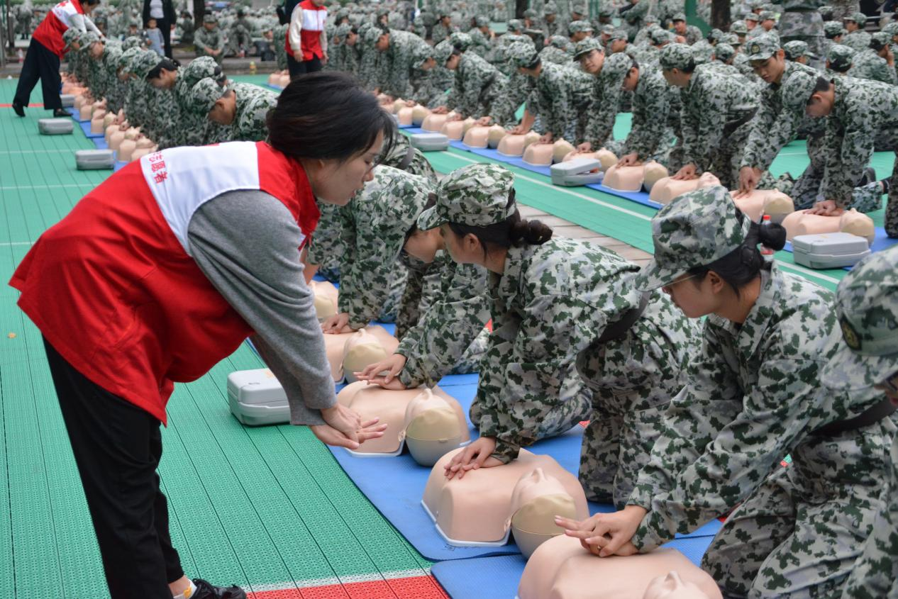 活动现场,长沙红十字会志愿者通过理论讲解与实操演示相结合的方式,结合校园常见的噎食、运动晕倒等场景,依次为各新生方阵讲解海姆立克急救法、心肺复苏、AED使用等急救技能。志愿者在模拟人身上演示操作流程,重点强调胸外按压深度、按压频率等动作要点,还提醒新生避开操作误区。随后,各方阵新生依次进行实操练习,志愿者在旁逐一观察,纠正“肘部弯曲“”按压位置偏移”等问题。此外,志愿者现场分享了真实急救案例,让新生更直观感受到掌握急救技能的重要性。参与活动的新生表示,分方阵开展的实操练习让他们能更准确把握急救动作细节,同时增强了学习急救技能的信心。