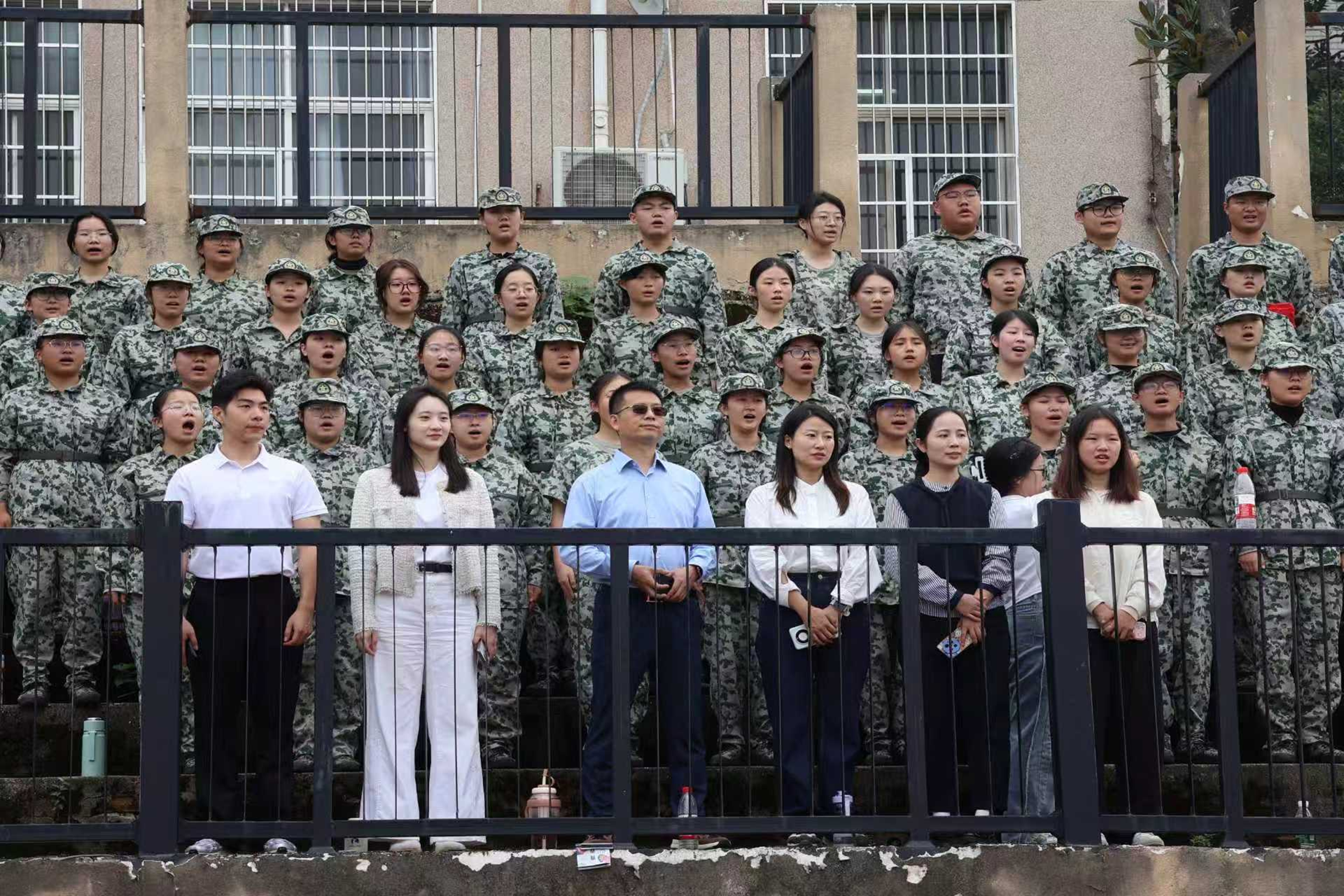 (通讯员 李静莲 林涵钰)10月15日上午,文学院党委书记熊剑峰,党委副书记刘宓蜜,学工办主任、2025级辅导员周灿,2023级辅导员陈天歆,2024级辅导员高明阳,2025级辅导员唐清华,前往张公岭校区慰问文学院2025级军训新生,视察军训工作并参与合唱团排练。