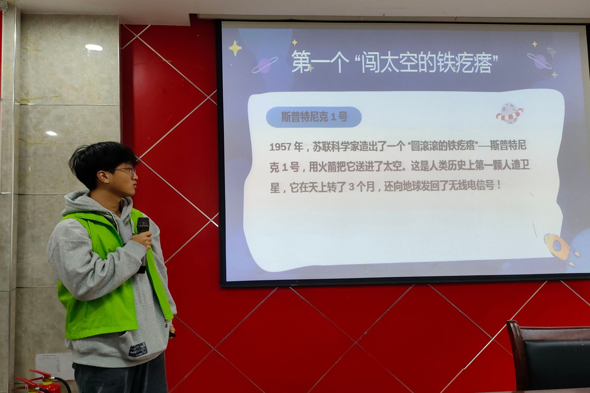 主讲人结合实际案例,讲解人造卫星相关知识