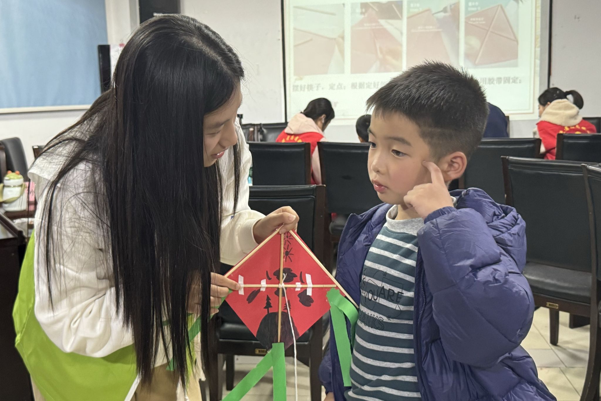 志愿者代表为小朋友们讲解纸鸢知识