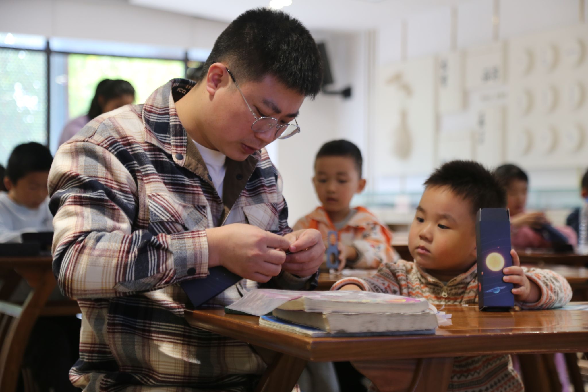 小朋友们在志愿者的引导下有序入场并就座,为活动的顺利开展提供了有力保障。主讲人通过展示绚丽的星空图像,启发小朋友们思考流星的成因,并以生动易懂的语言讲解相关天文知识。配合插画与视频材料,小朋友们对流星现象有了更深入的理解,拓展了天文观测的基础知识。现场互动积极,小朋友们踊跃回答问题,主讲人及时回应并给予鼓励。在手工环节中,志愿者组织亲子家庭共同制作望远镜,耐心帮助每一组家庭完成作品。