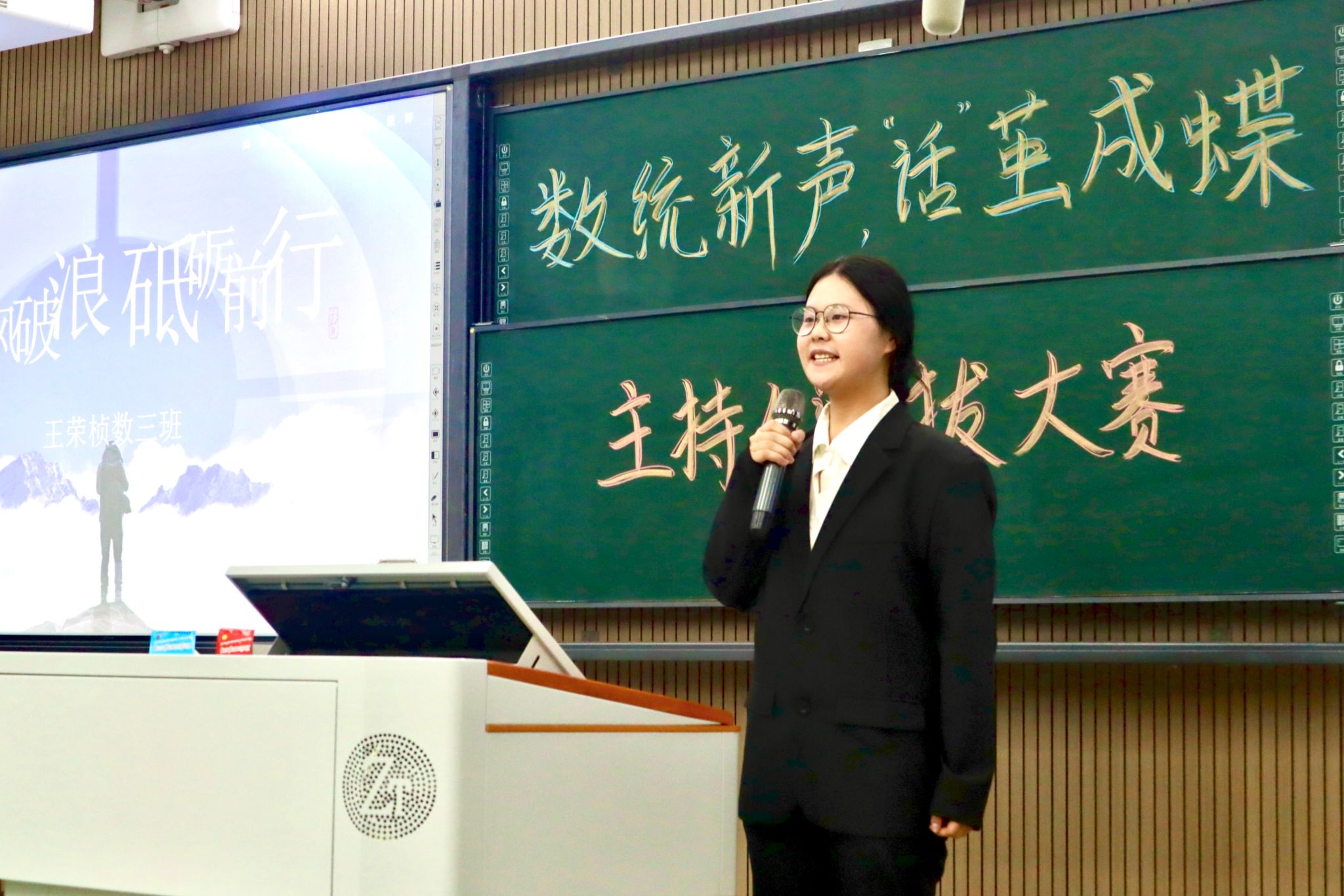 (通讯员 高婧蕾 王雅一然)为丰富校园文化生活,选拔优秀主持人,11月7日晚,数学与统计学院(以下简称“数统院”)学生会文艺部于达美楼101教室举办“数统新声,‘话’茧成蝶”主持人比赛。数统院学生会指导老师刘美、2025级辅导员许劲晗,以及2023级播音与主持艺术专业两名学生担任此次比赛评委。