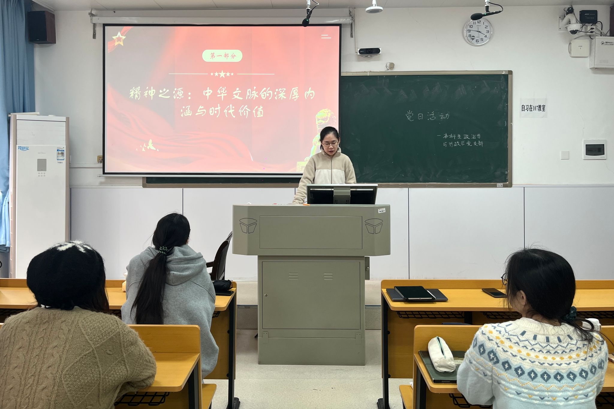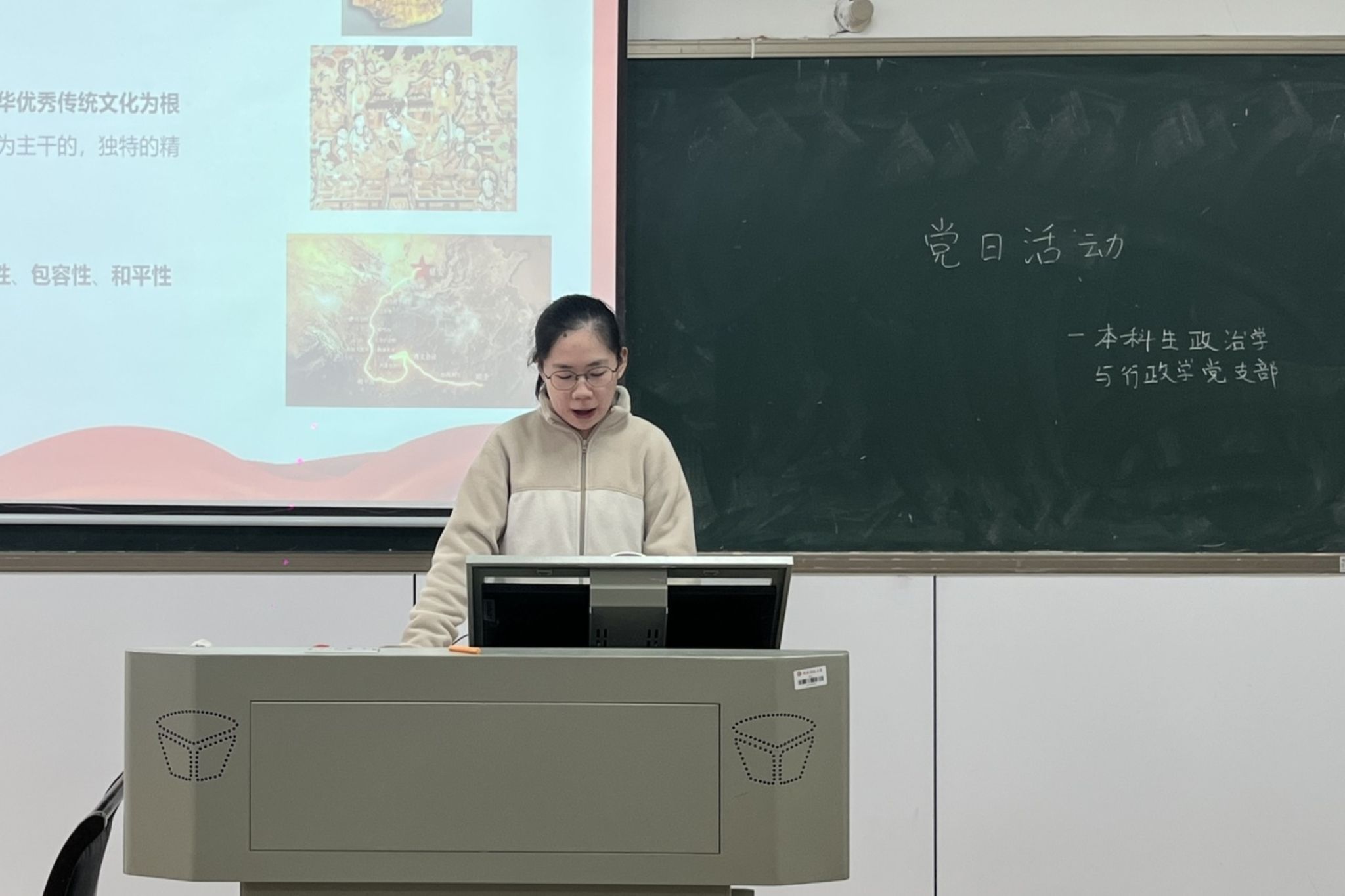 (通讯员 刘香颖 谭景月 吴祖乐)为深入学习中华优秀传统文化、革命文化与社会主义先进文化,增强文化自信,公共管理学院本科生政治学与行政学党支部(以下简称“政行党支部”)于11月13日中午在景德楼中栋112教室开展以“传承历史文脉,坚定文化自信”为主题的党日活动。党支部成员张佩研担任活动主讲人,全体成员参加此次活动。