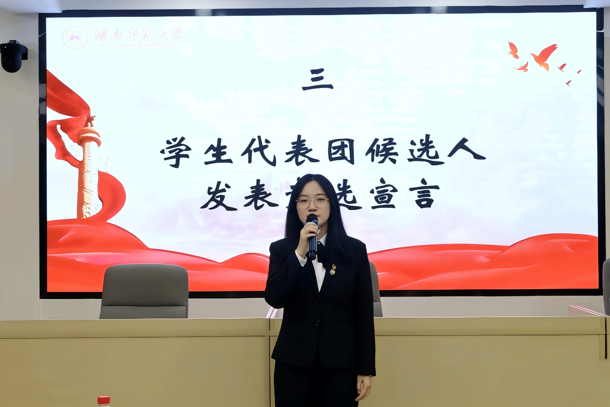 在竞选环节,学生代表候选人依次登台演讲。他们围绕自身优势、工作理念与未来规划展开阐述,表达了服务同学、履职尽责的决心。演讲完毕后,全体参会人员现场投票,经公开计票产生新一届学生代表名单。