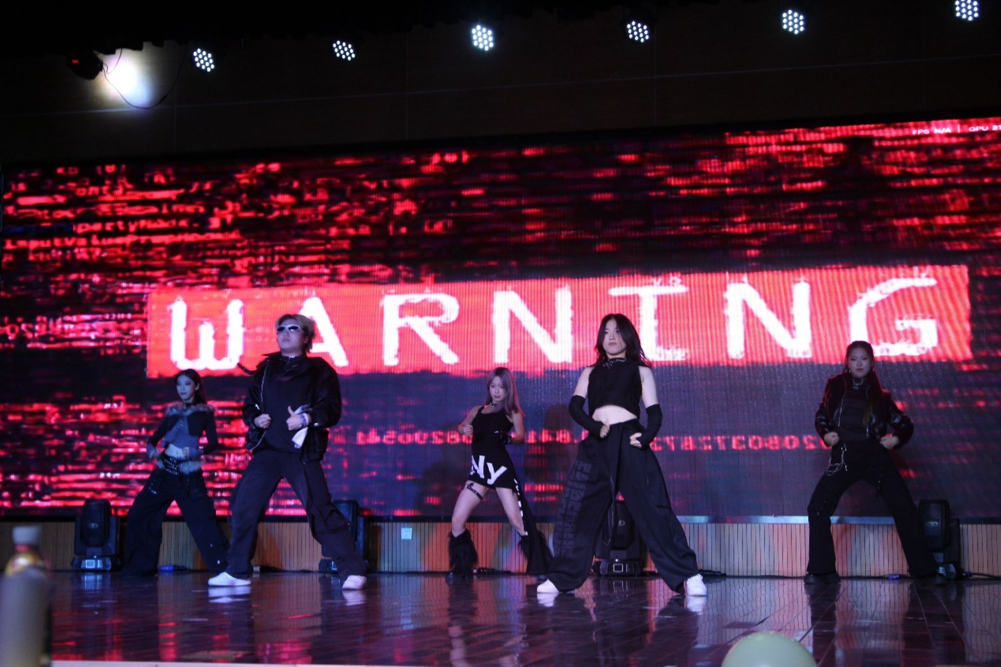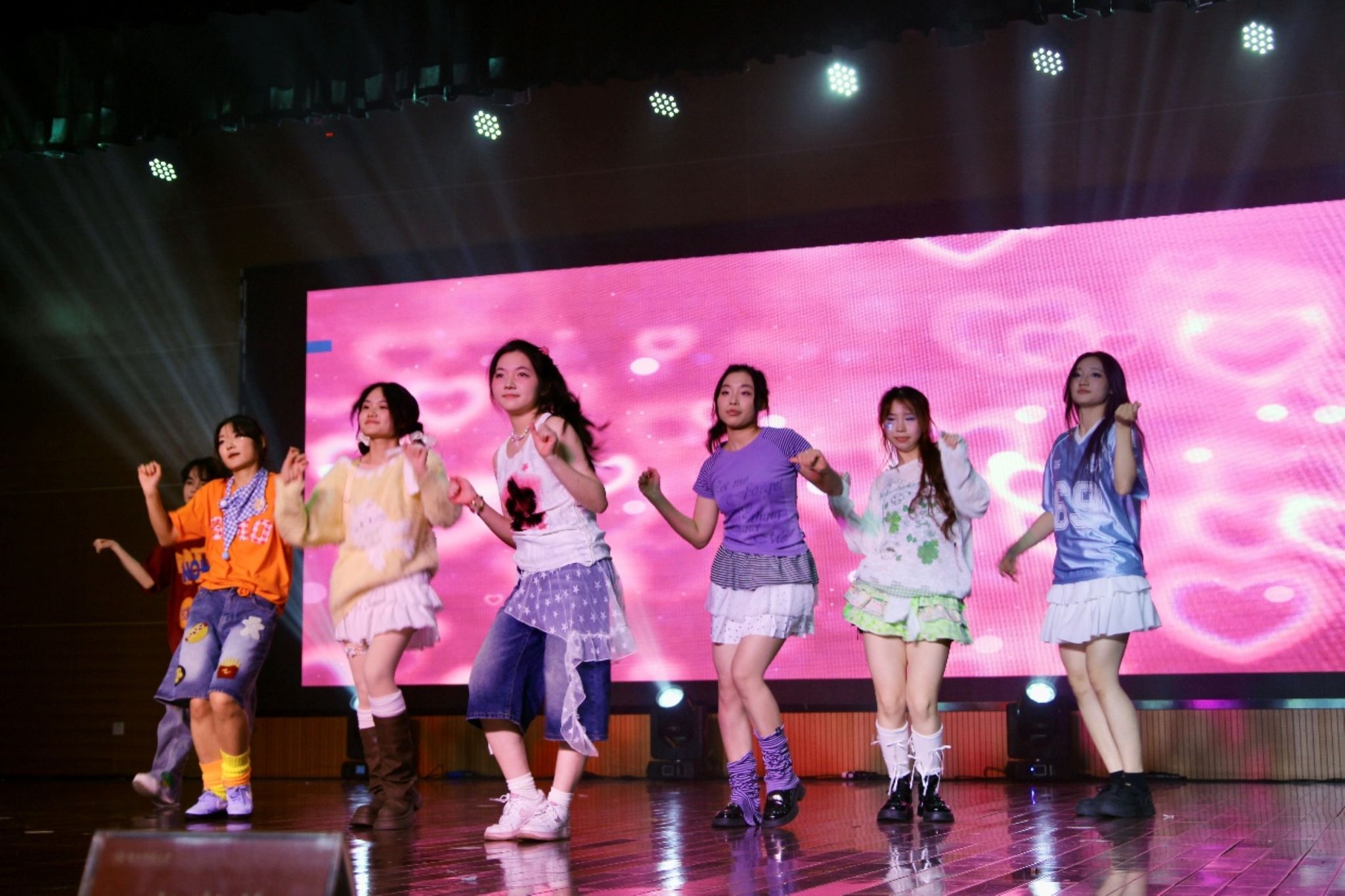 群舞《shalala》表演者动作整齐划一,充满青春活力,展现大学生的蓬勃朝气。