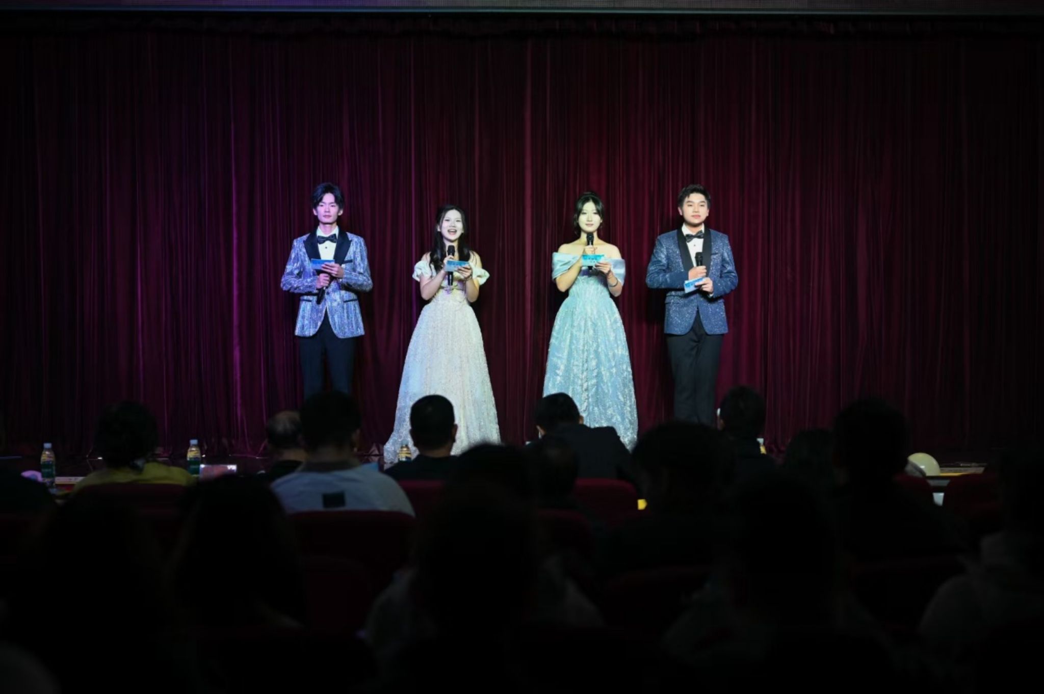 主持人团队以饱满的精神状态宣布晚会正式开始,四位主持人配合默契,拉开了晚会的序幕。