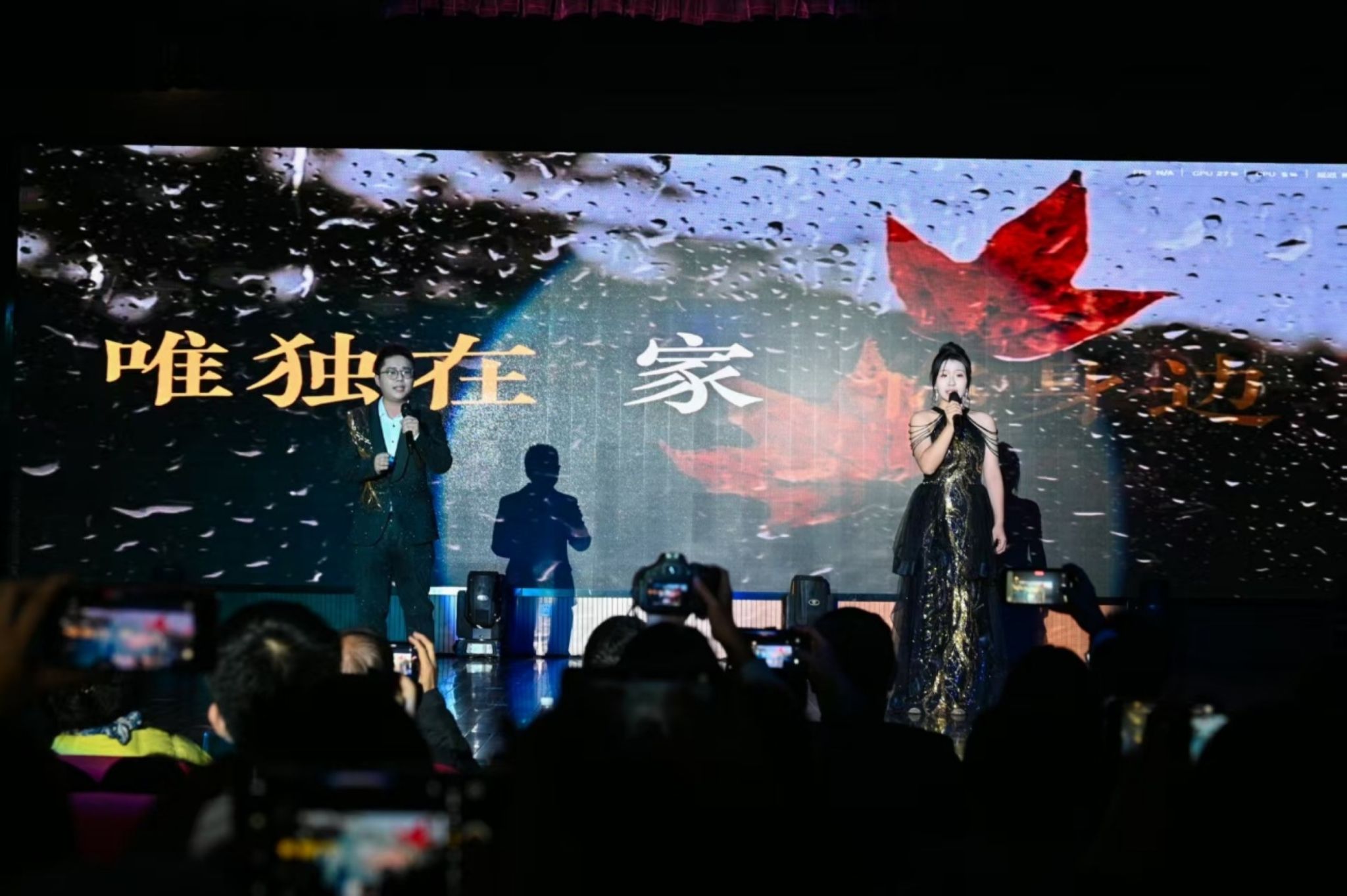 新生辅导员深情演唱歌曲,用歌声传递对学生的关怀与期望,台下学生纷纷打开手机灯光呼应。
