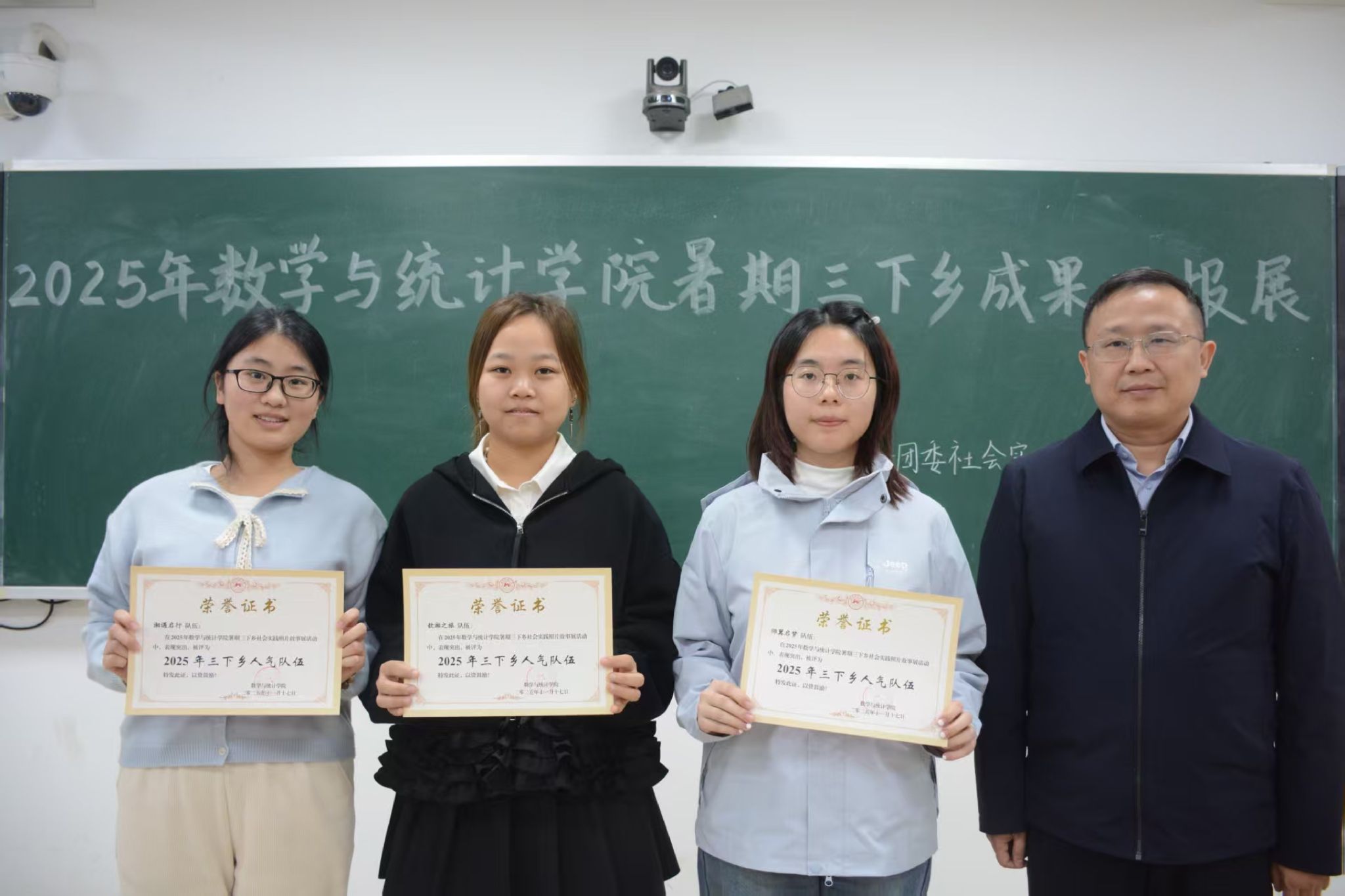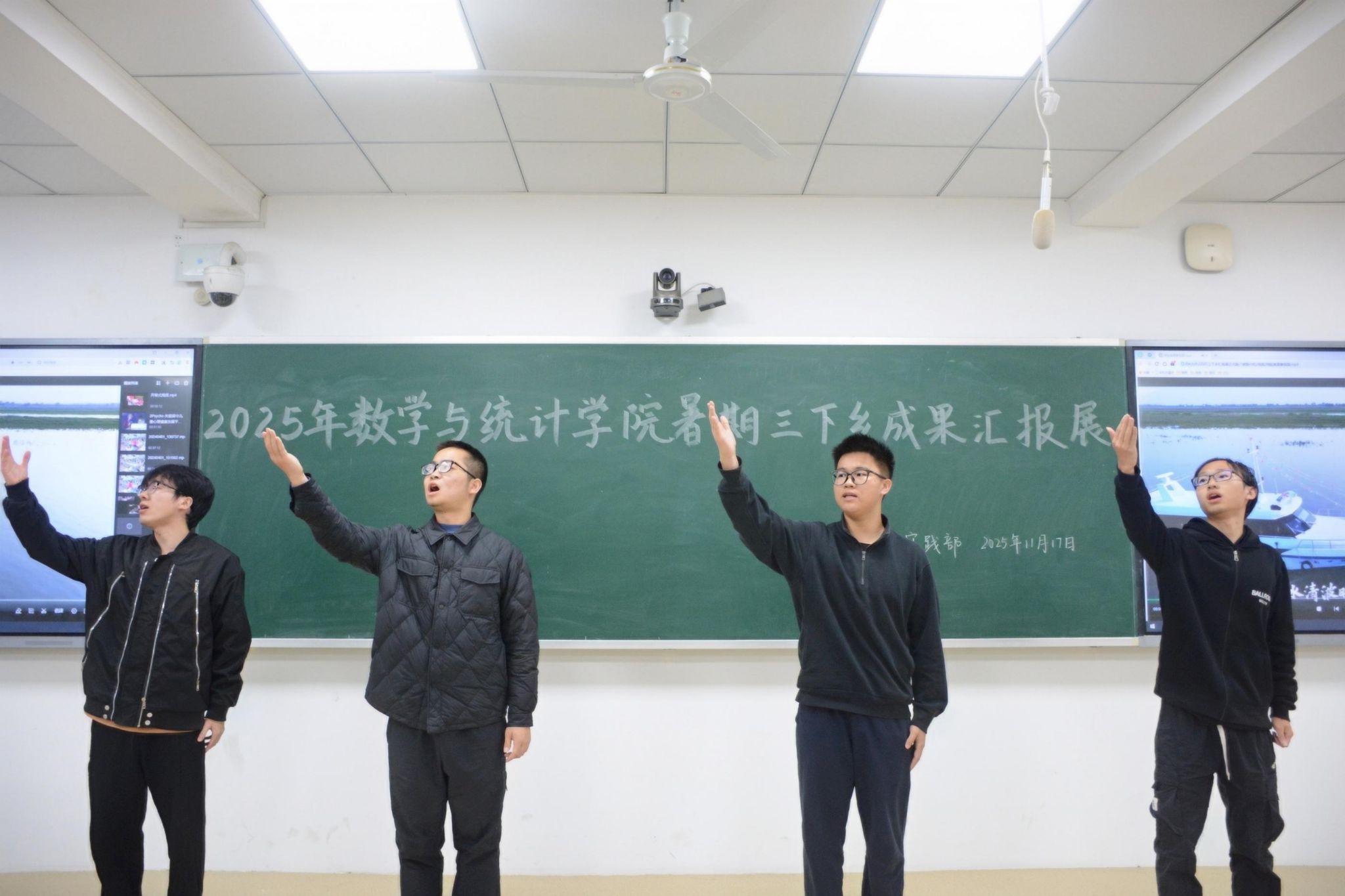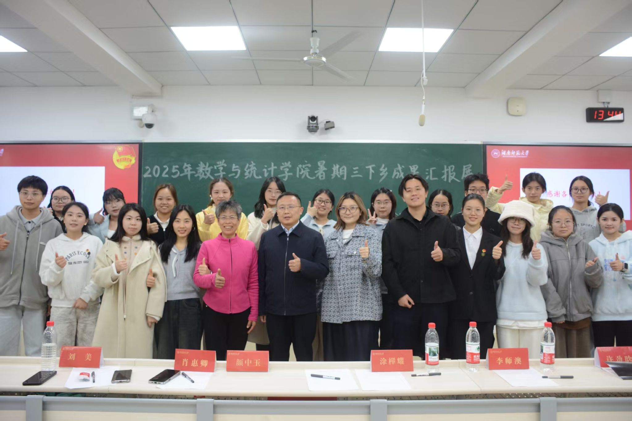 (通讯员 王亦言 迟薪格 罗清奕)11月17日下午,数学与统计学院(以下简称“数统院”)于格物楼409教室举办2025年三下乡实践成果汇报会。数统院党委书记颜中玉、党委副书记涂榉耀、2022级辅导员李师澳、2023级辅导员肖惠卿、2024级辅导员刘美、2025级辅导员许劲晗参会。