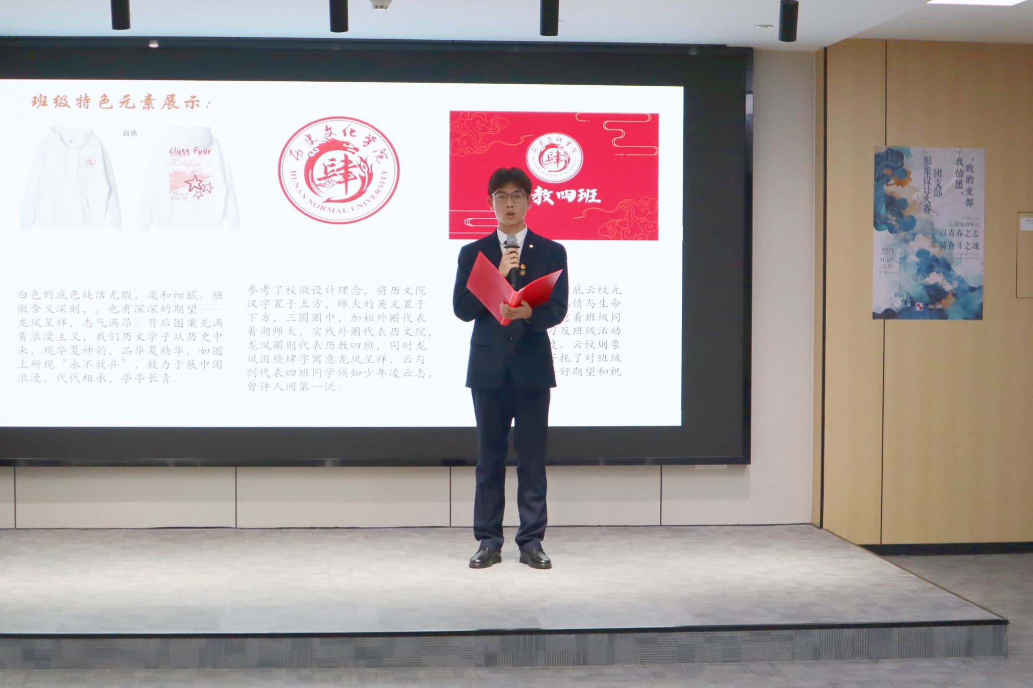 活动在团歌合唱中开始。在“回头看”环节中,2024级历史四班团支部系统梳理了工作亮点,分享了建设经验,为新生团支部提供了借鉴。2025级各新生团支部在其后依次展示,围绕思想引领、学风建设、组织凝聚、宣传发声与活力提升五大方向,结合PPT、视频等形式介绍支部建设规划。各班结合专业知识,参考历史典籍与文物研究内容,将考据方法与历史思维用于组织建设,设计出班训、班旗等视觉标识。