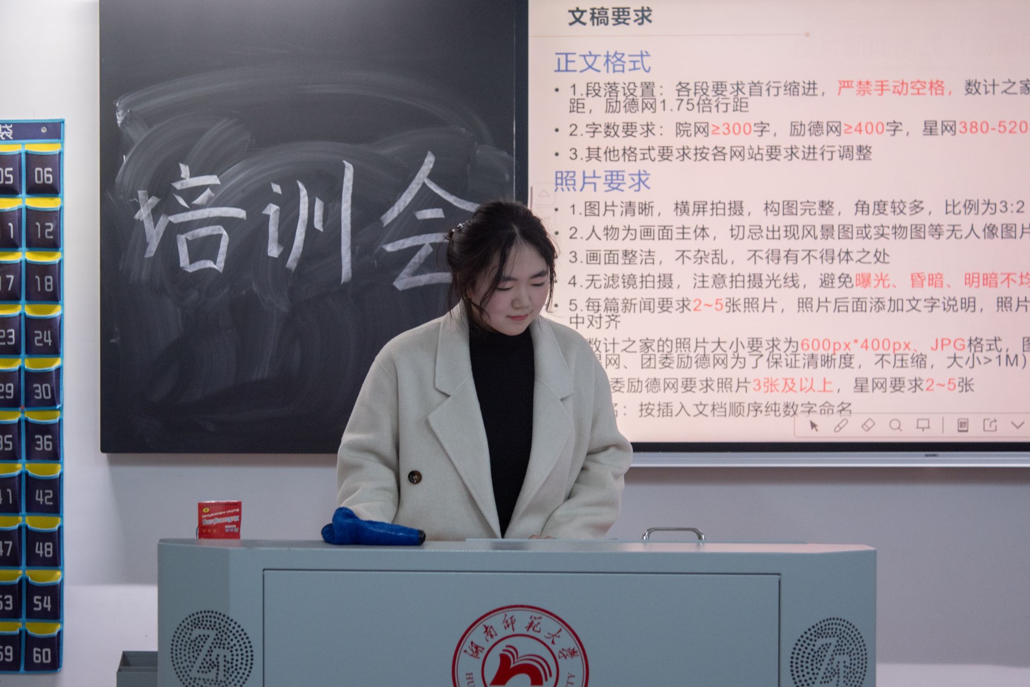 (通讯员 郑竣遥 张崇杰)为持续提高新闻稿件、照片以及推文的质量,12月3日晚,数学与统计学院(以下简称“数统院”)团委会青年传媒中心(以下简称“青传”)于桃花坪校区实训楼202教室开展第二次宣传培训会。青传新闻采编部第二负责人、影音部第二负责人与新媒体部第二负责人受邀主讲。