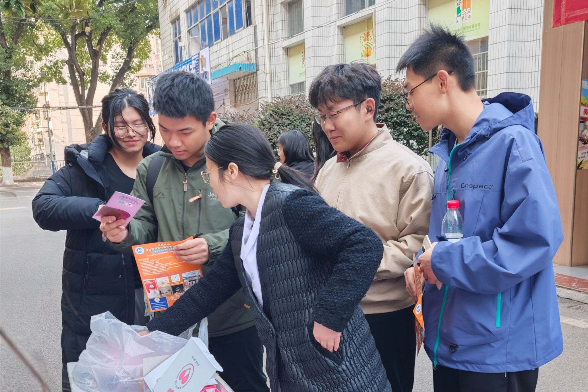 (通讯员 何昱黎 张婉琳)12月3日至12月5日,文学院在张公岭校区牵头组织开展防艾宣传资料集中发放工作,覆盖校区内文学院、马克思主义学院等五个学院的全体师生。校医院医师李咏雪全程驻点提供专业咨询,文学院2025级辅导员唐清华亦到场了解活动开展情况。