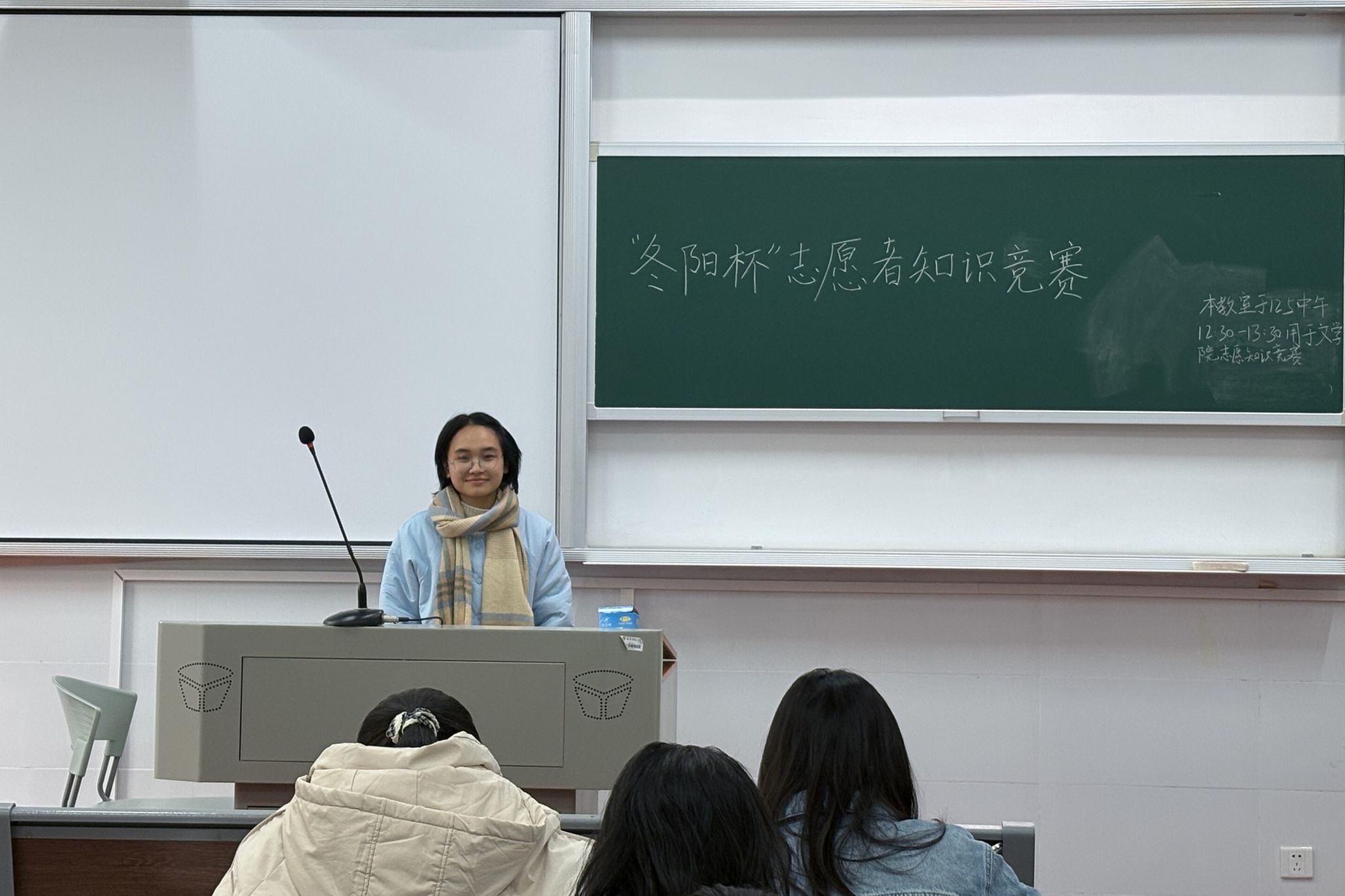 (通讯员 廖燕 庞奕玟)为丰富同学们的志愿服务知识,12月5日中午,文学院团委青年志愿者工作部(后文简称“青工部”)面向2024级与2025级志愿者,分别在文渊楼311教室和张公岭校区北阶教室举办了“冬阳杯”志愿知识竞赛。此次活动由文学院团委青工部负责人李冉总体负责。