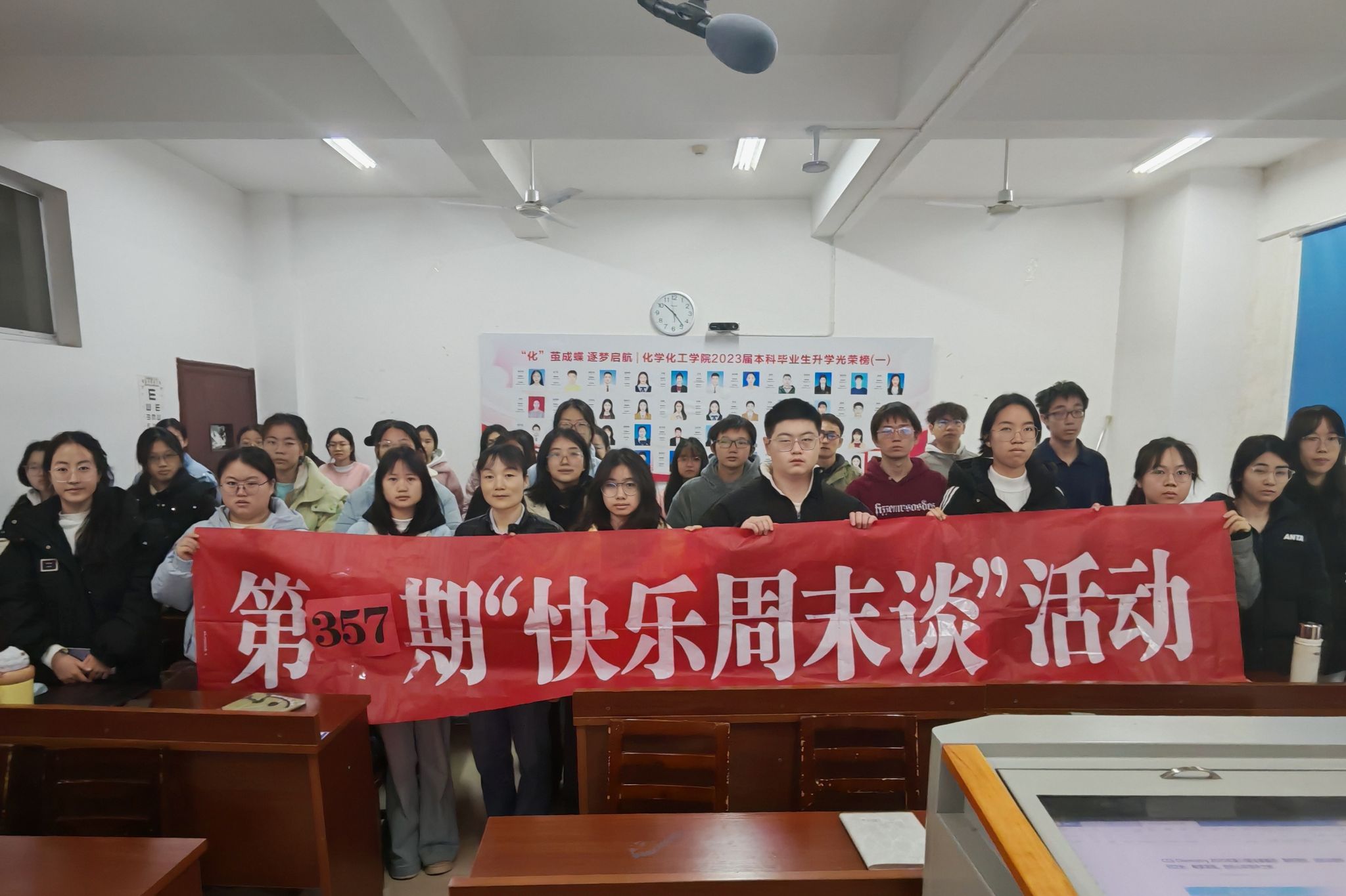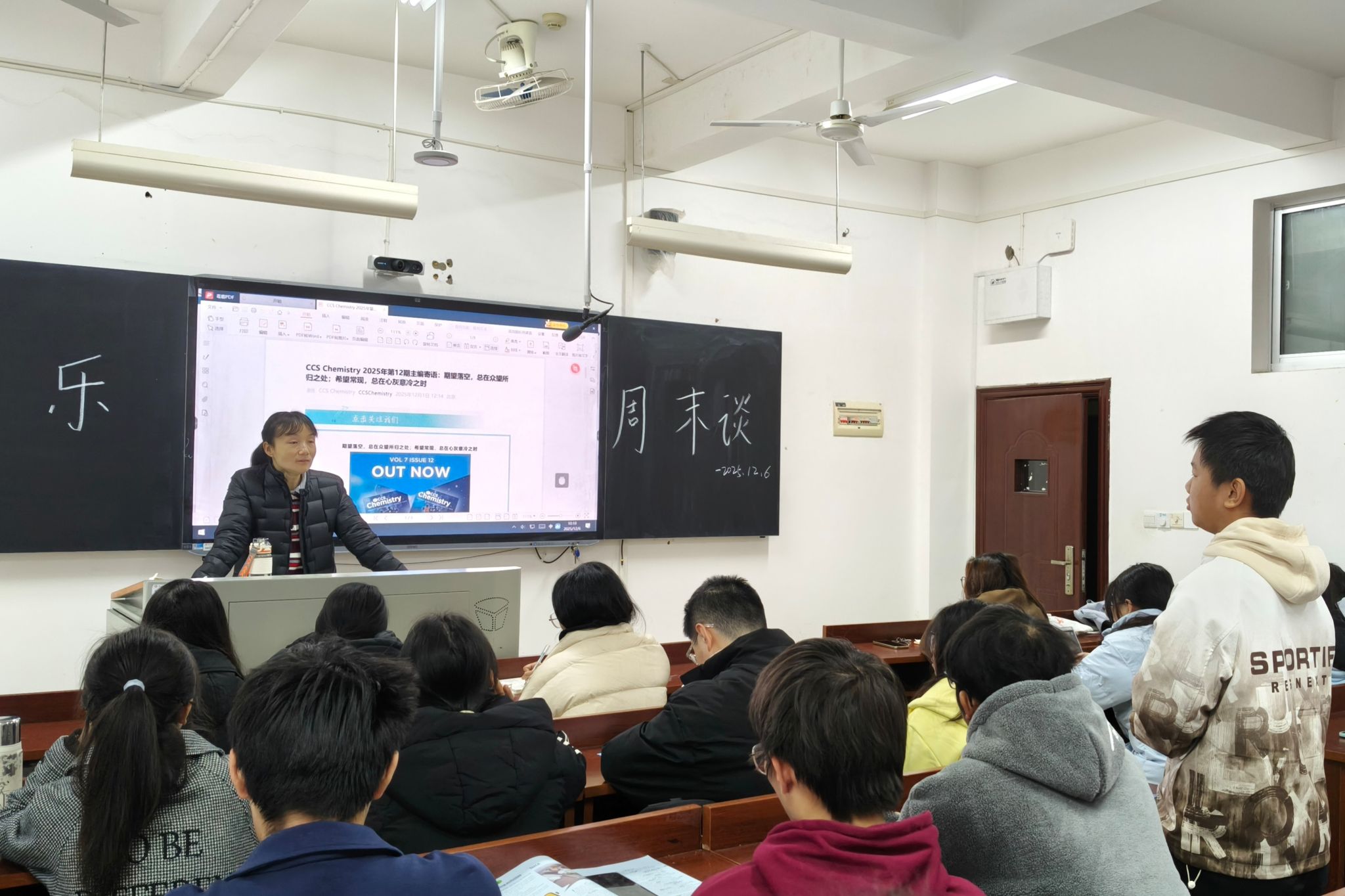 (通讯员 张艾平 刘佳瑞)12月6日上午,化学化工学院(以下简称“化工院”)学生会办公室在化学楼210教室组织开展第357期快乐周末谈活动。此次活动邀请化工院教授谭蓉担任主讲人,2023级、2024级和2025级部分学生参与。