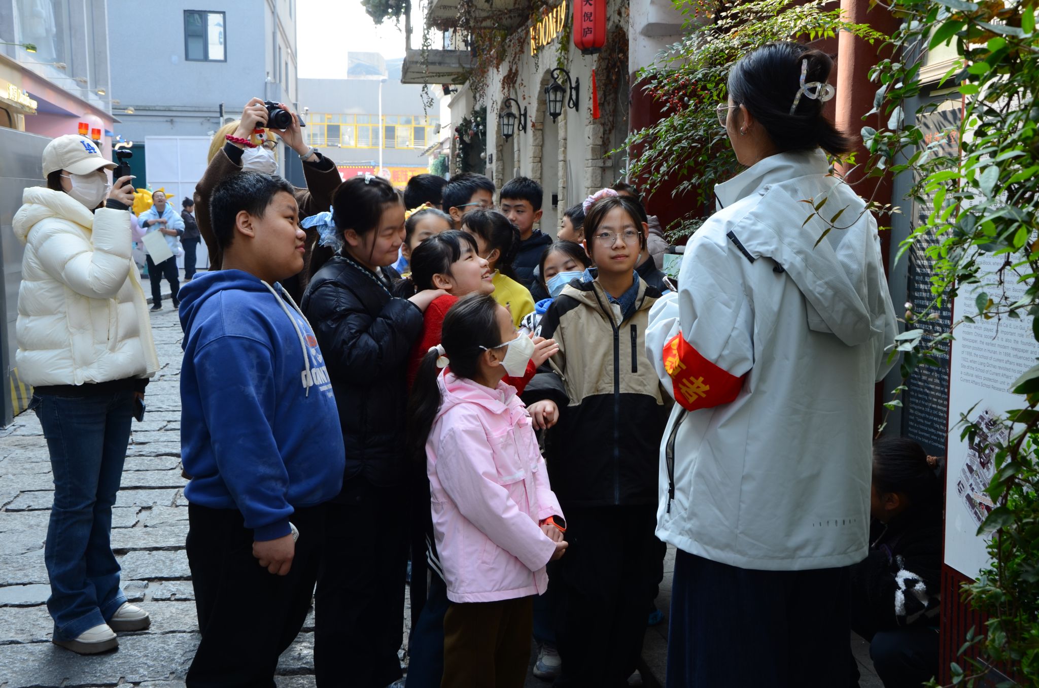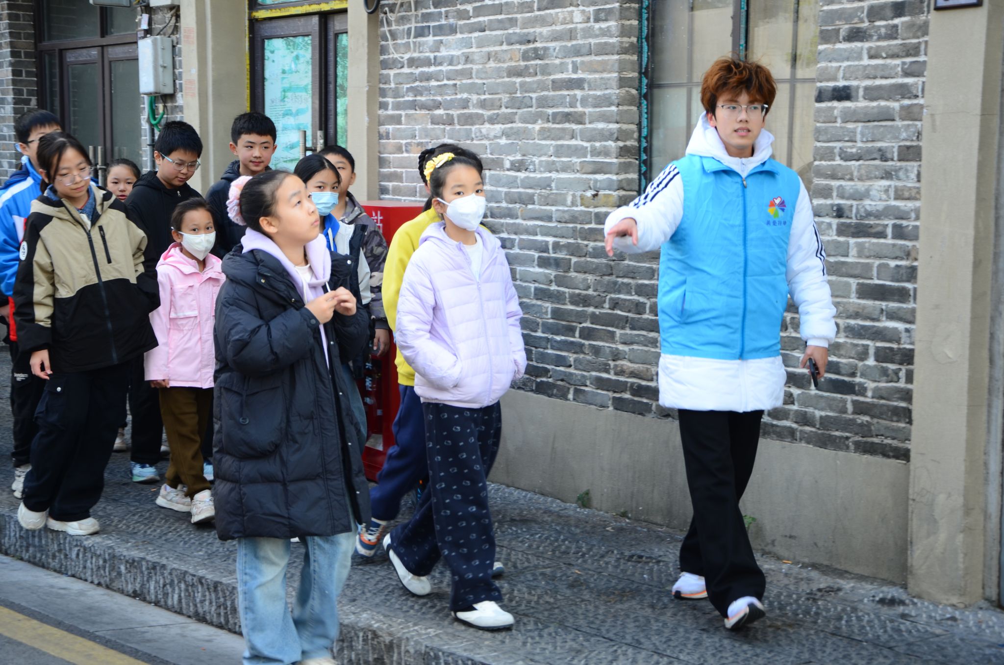 活动开始前,各志愿者与工作人员提前到场,分工明确。活动期间,现场讲解员以街区点位导览、文化故事分享等形式,面向儿童与社区居民开展常态化服务,带领儿童们观光浏览历史文化街区,详细阐述建筑探秘、人文典故等内容,系统梳理连升街民国建筑特色、名人典故等核心文化内容,让静态的历史资源转化为可感知、可传播的文化符号。同时,工作人员负责维护现场安全秩序,确保途中无人掉队。活动结束,全体工作人员、志愿者与儿童合影留念。