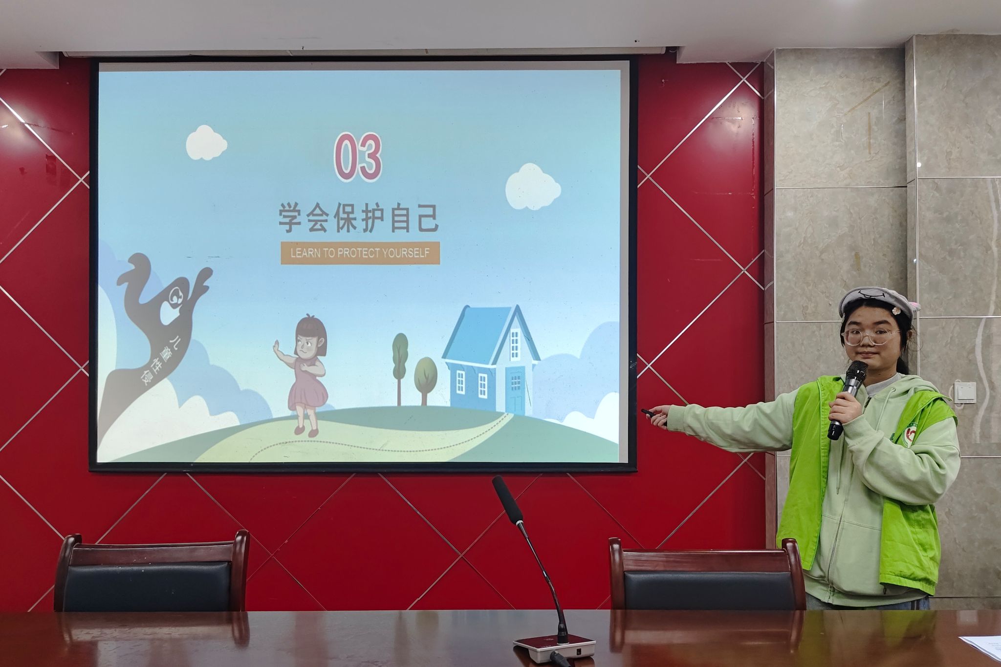 主讲人进行性侵害主题宣讲,详细地介绍相关知识