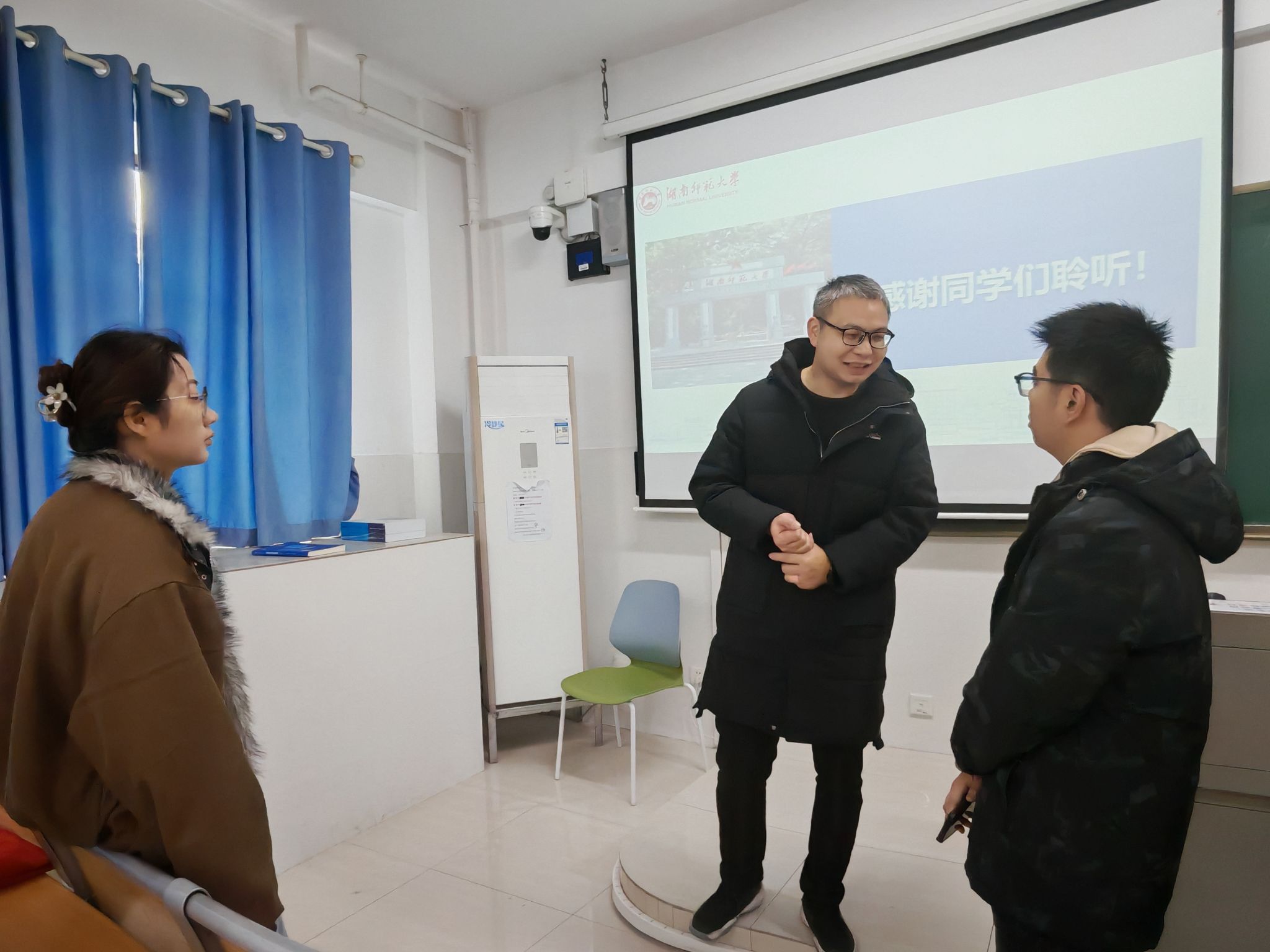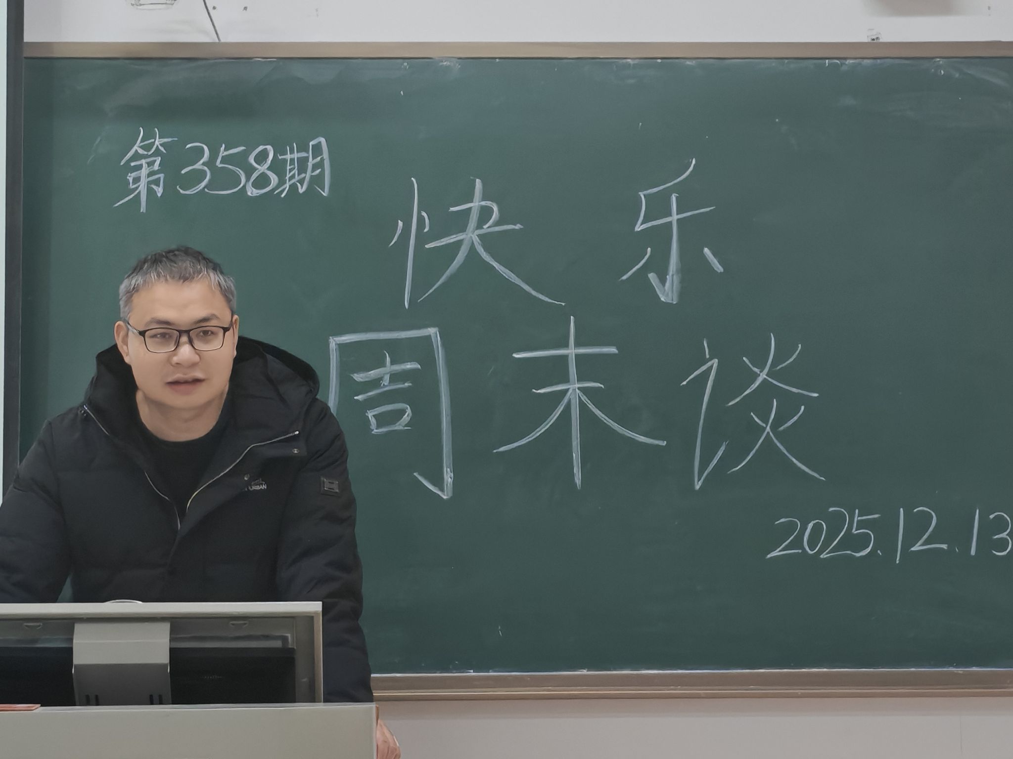 (通讯员 张艾平 石文璟)12月13日上午,化学化工学院(以下简称“化工院”)学生会办公室在中和楼211教室组织开展第358期快乐周末谈活动。化工院教授苏乐斌应邀担任主讲人,2023级至2025级部分本科生参与此次活动。