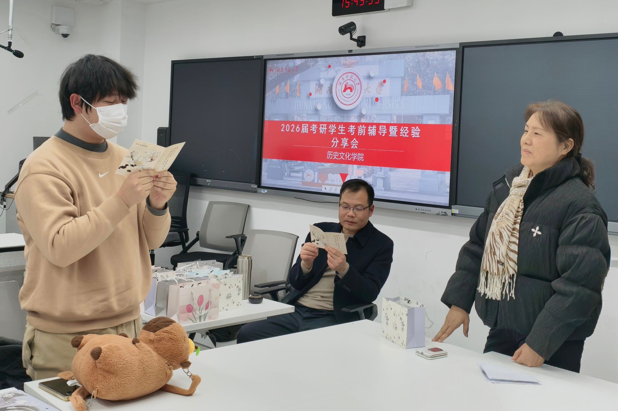 (通讯员 王雅 曾婉怡)12月15日下午,历史文化学院于科研楼313会议室开展2026届考研学生考前辅导暨经验分享会。此次会议由学工办老师李思文主持,历史文化学院副院长郭辉担任主讲嘉宾,院党委副书记马欣到场,2022级全体考研考生参加。