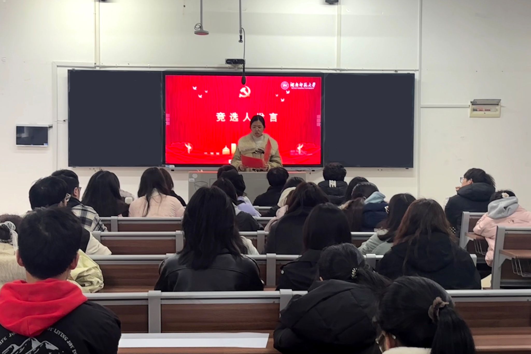 会上,主持人首先说明了推优大会的意义与重要性,强调其为团组织选拔优秀后备力量的重要途径,并介绍了此次会议的基本流程,包括候选人发言与学社管主任发言两个环节。随后,竞选人依次上台发言,表达加入团校学习的强烈意愿,并结合自身情况对未来在团校的学习进行了规划与展望。