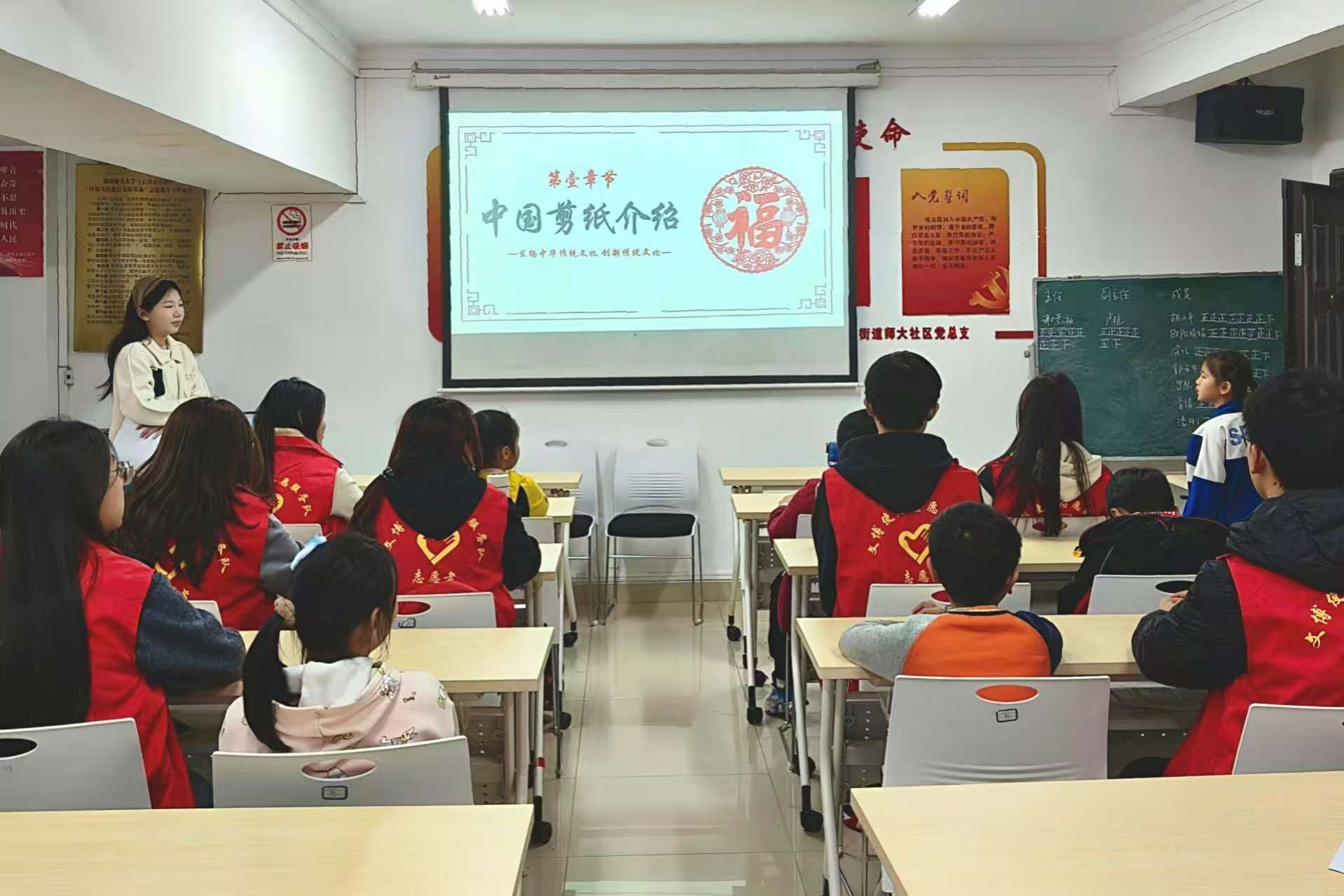 (通讯员 贺宛倩 李佳琪 代鸿春)为传承湘西剪纸非遗文化,弘扬湖湘民间艺术,3月14日下午,历史文化学院(以下简称“历文院”)团委区校共建项目部在师大社区党群服务中心举办“纸剪吉祥,纹载湘西”志愿服务活动,共有15名志愿者与10名小朋友参与。