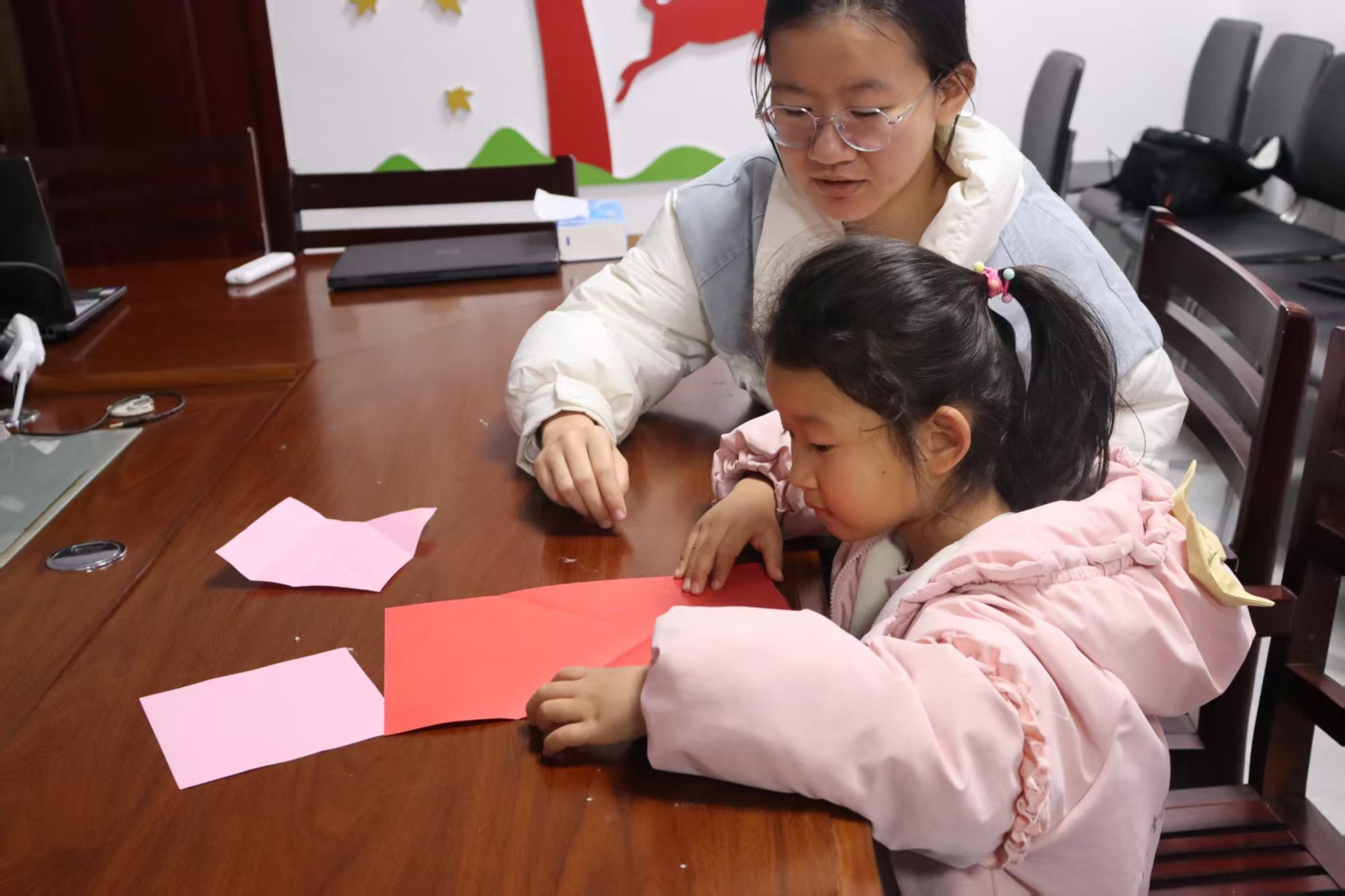 活动结束时,小朋友们手持折叠完成的纸飞机和千纸鹤,与志愿者在社区门口合影留念。小朋友表示,他们不仅学会了折纸技巧,更感受到传统文化的魅力。
