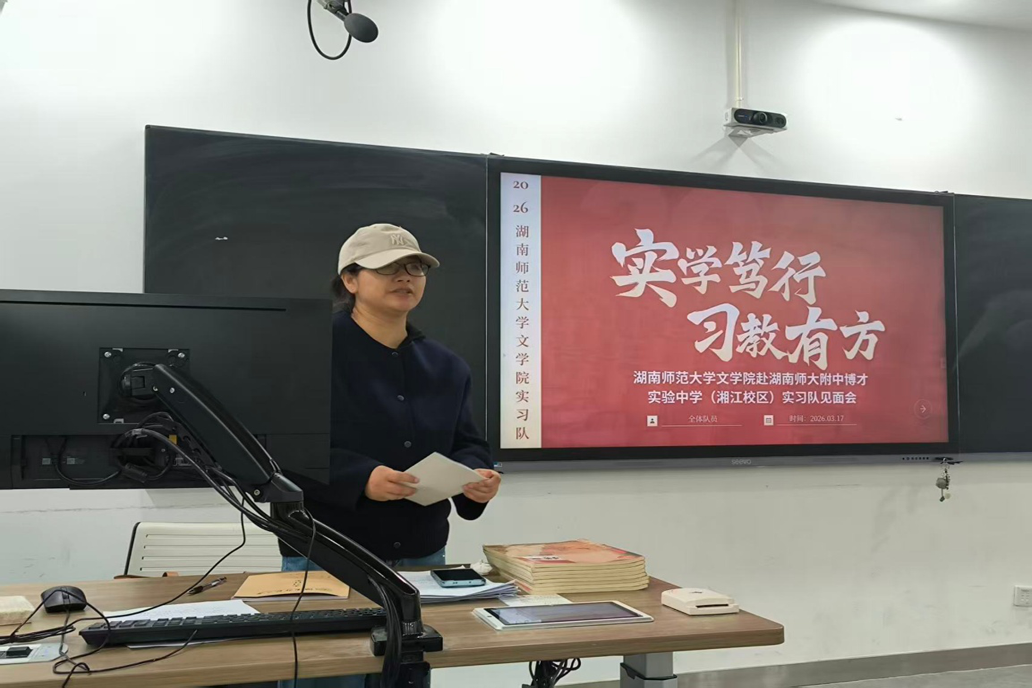 (通讯员 金凤萍 姚震宇)3月17日上午,文学院2023级赴湖南师大附中博才实验中学(湘江校区)实习队在至善楼413教室举行见面会暨第一次集体试讲活动。实习队长金凤萍主持活动,指导老师李华到场指导,全体实习队员参加。