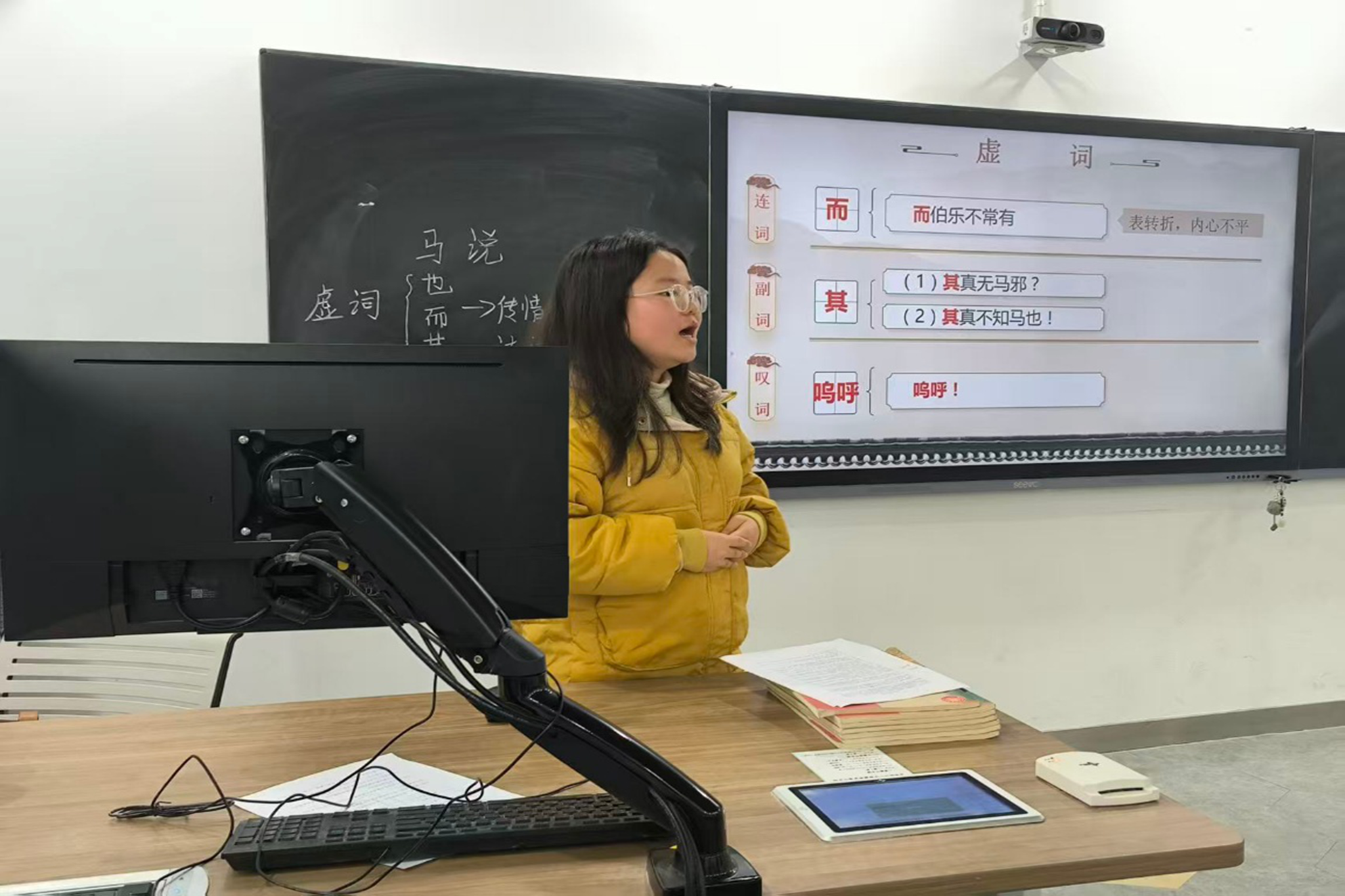 在集体试讲环节,实习队员依次上台进行片段教学,展示前期备课的初步成果。实习队采用同篇课文探讨和单篇课文评析两种模式,通过老师点评与队员互评相结合的方式,在总结教学共性问题的同时,帮助队员进行个人教学诊断。