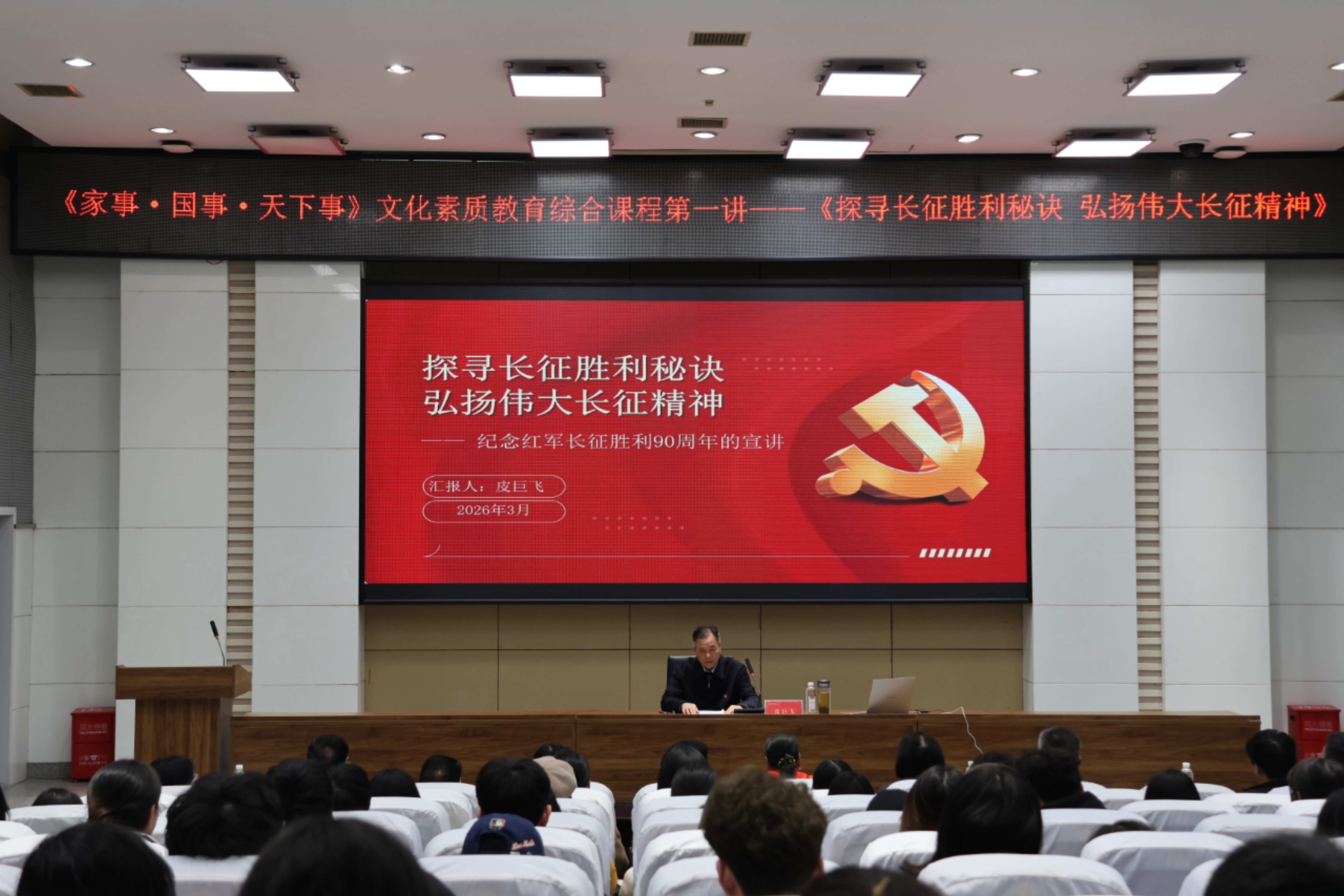 皮巨飞围绕“探寻长征胜利秘诀,弘扬伟大长征精神”的主题,以纪念红军长征胜利90周年为切入点,从“重走长征路的切身感受”“长征的历史意义和历史地位”“长征胜利的深层原因”“新时代弘扬长征精神路径”四个方面深入展开宣讲。他结合自身重走长征路的实地考察经历,生动讲述了红军历经千难万险、九死一生的峥嵘岁月,同时,他强调新时代的我们要赓续红色血脉,将长征精神融入时代发展的洪流,坚定“四个自信”、敢于斗争、善于斗争,以坚定的理想信念和坚韧不拔的品格勇毅前行。他的宣讲将实地见闻、历史解读与新时代实践深度融合,让现场听众深刻感悟长征胜利的伟大意义,汲取奋进力量。讲座的最后,皮巨飞与同学们进行了互动问答,现场气氛热烈。