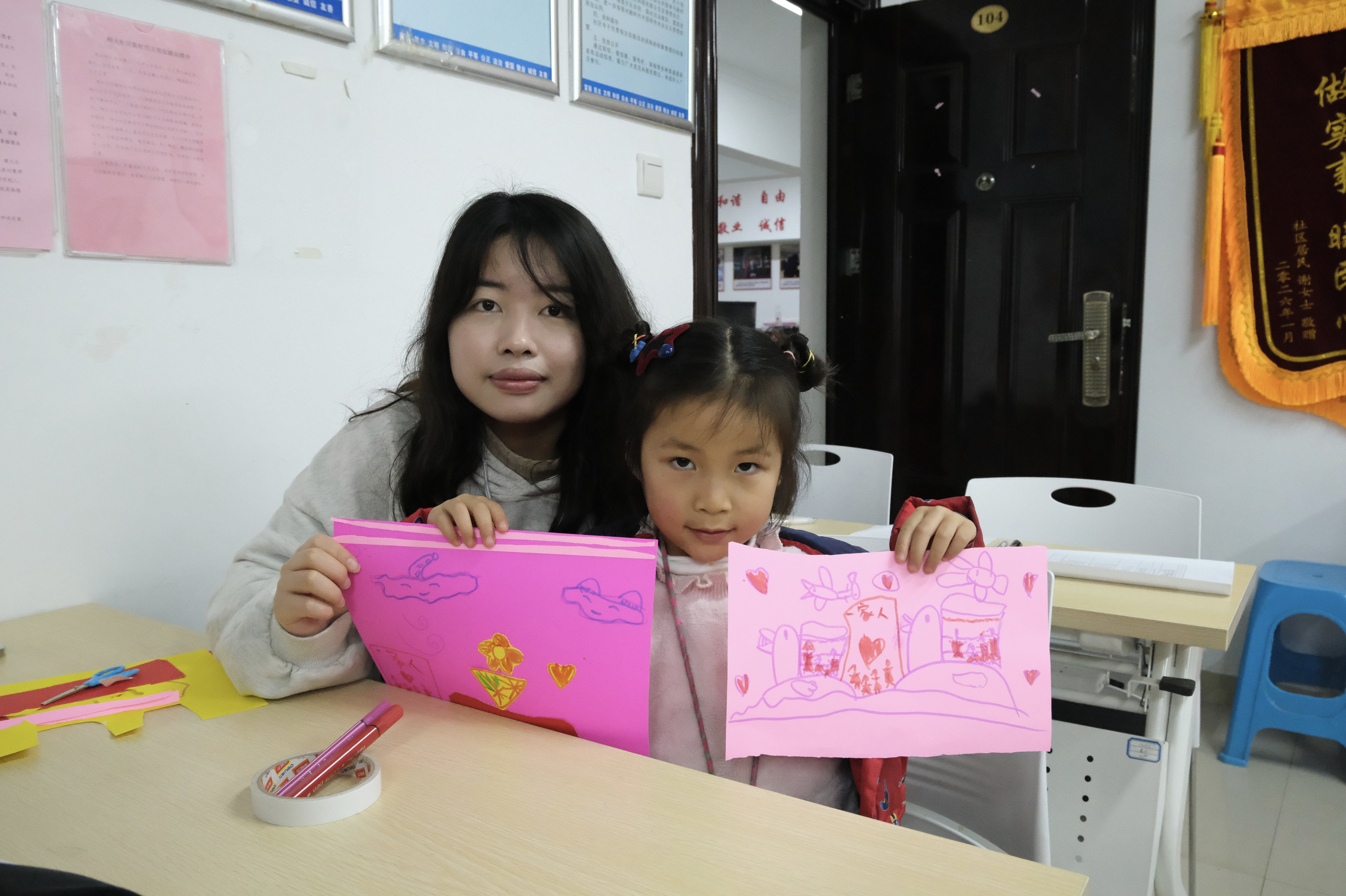 小朋友在志愿者的帮助下完成手工制作