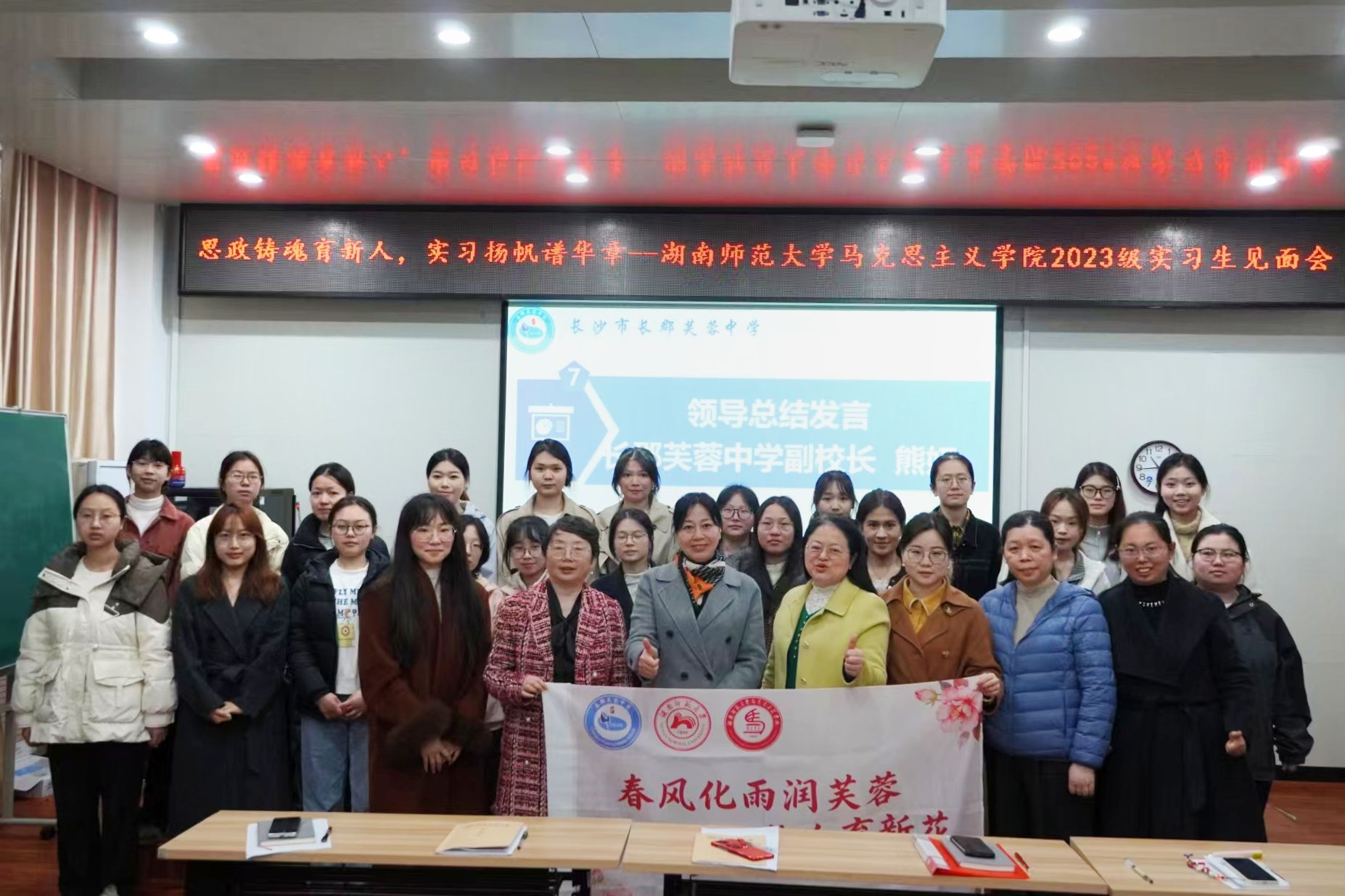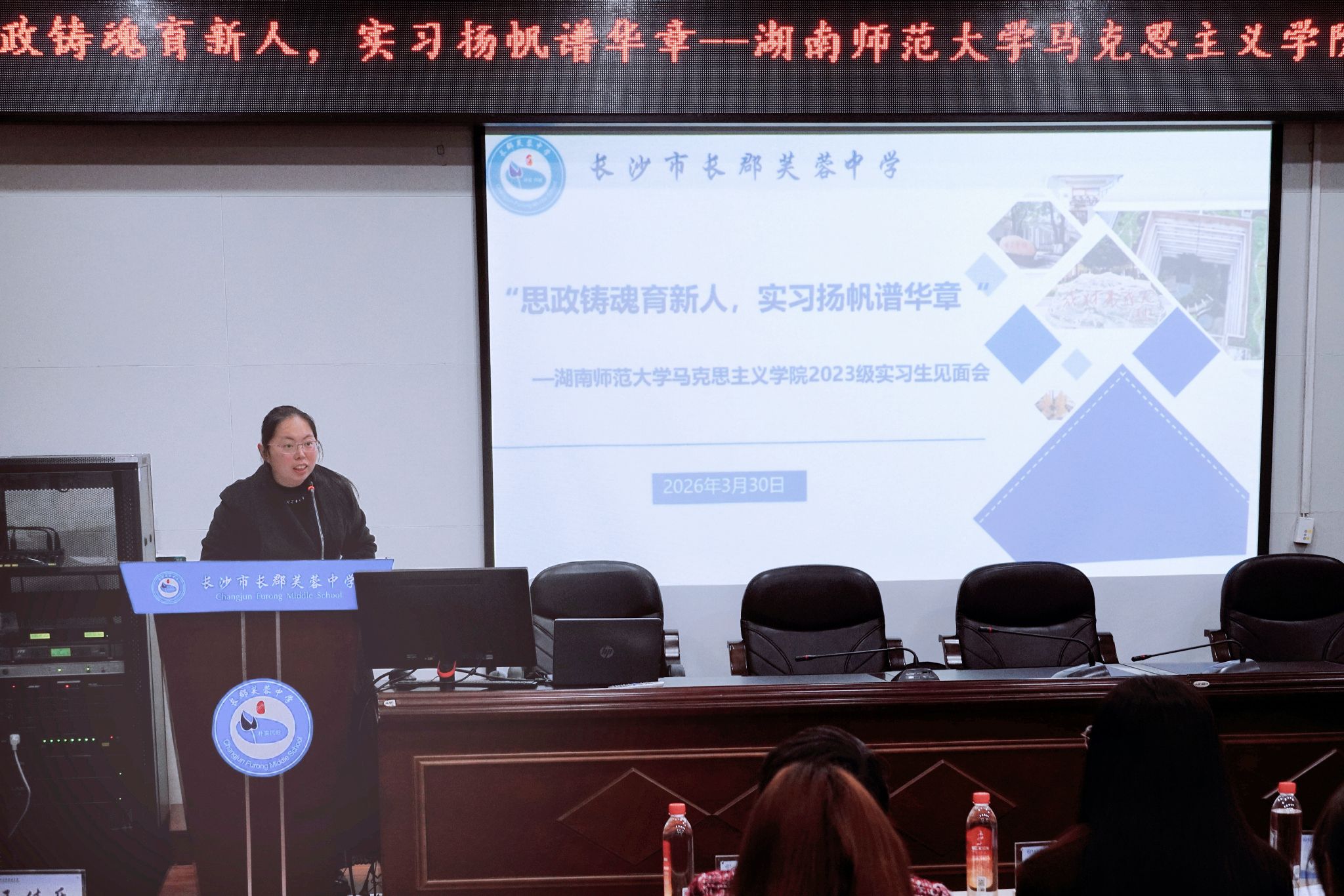 (通讯员 张文婷 古丽加马丽·穆沙 蒲鑫睿)3月30日,长郡芙蓉中学实习队于长郡芙蓉中学一会议室组织开展“思政铸魂育新人,实习扬帆谱华章”实习见面会。长郡芙蓉中学副校长熊妍、教务处主任李娜、教务处副主任张娟、办公室主任贺丽娜、实习队指导老师陈文珍、孟恒艳及全体实习队员参与此次会议。