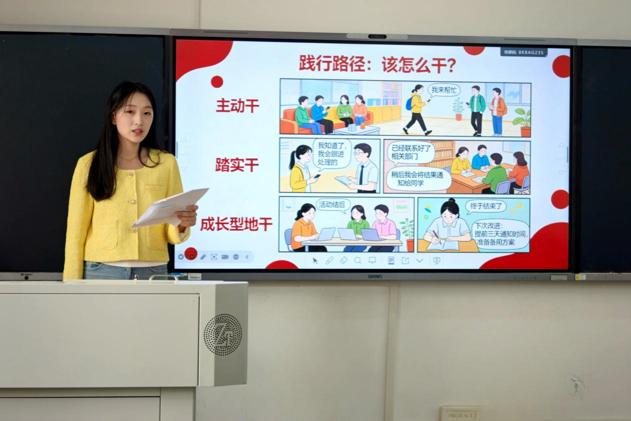 讲座内容紧扣当前学生干部队伍建设中的重点与难点,回应了学生干部在实际工作中遇到的困惑与需求。讲座中,毛奕婷围绕责任担当与作风建设两大主题,结合学生干部在实际工作中遇到的困惑与需求,从政治素养、组织协调能力、服务意识等方面系统阐述了新时代学生干部应具备的基本素质,要求全体学生干部严守纪律规矩,保持务实、廉洁、高效的工作作风。她表示,学生干部应坚持服务同学宗旨,强化责任意识、注重工作实效。互动环节中,多名学生干部结合自身工作中遇到的困惑提问,她逐一解答,并提供了针对性的改进建议。