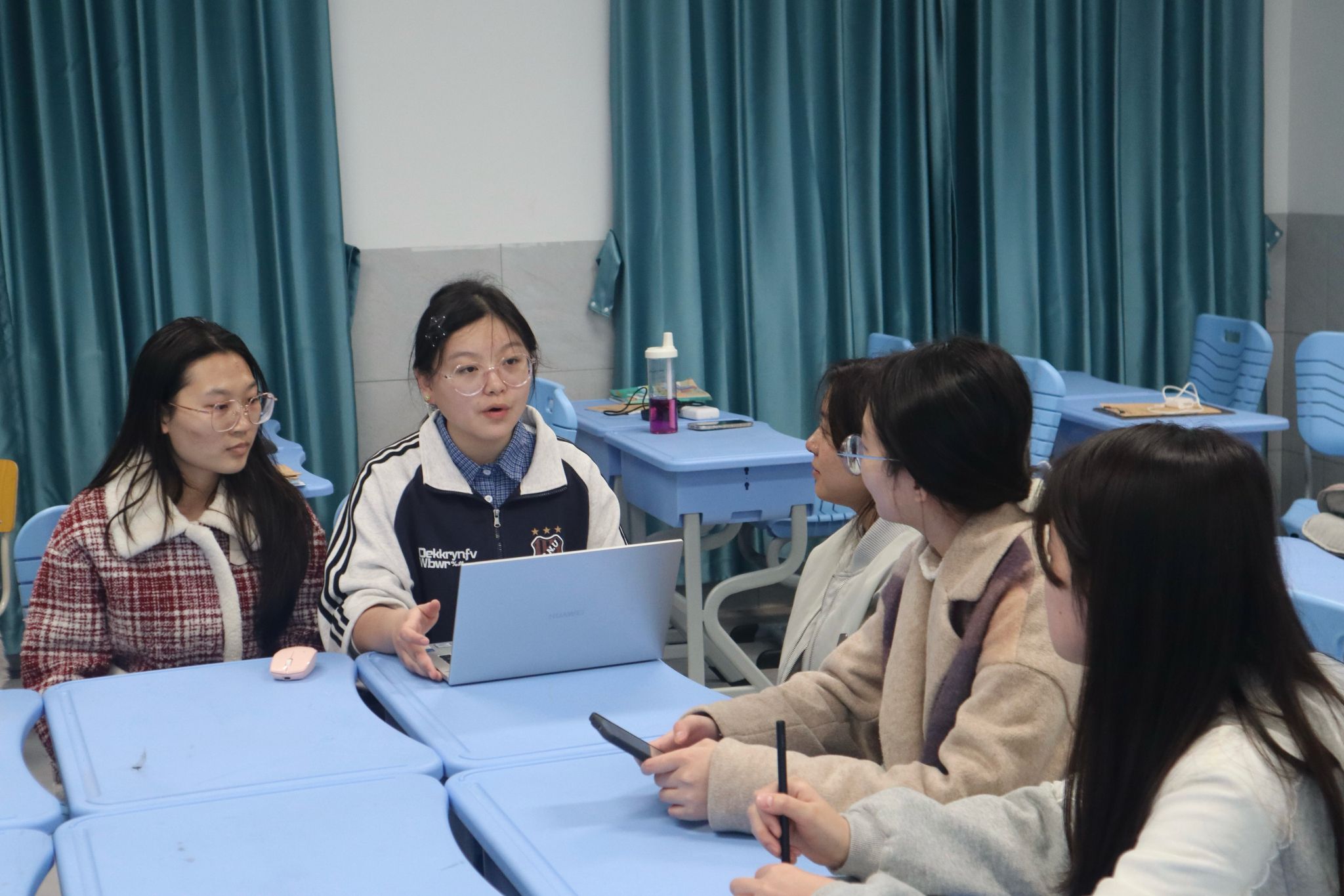 全体实习队员依次发言,结合自身听课经历,分享在课堂教学环节中的收获。期间,实习队员们就当前教学实践中遇到的困惑与不足进行了交流,明确了课堂互动设计不够灵活等问题。随后,队员们相互探讨解决方案,交流应对思路,实现互学互鉴,为后续开展教学实践工作积累了经验。