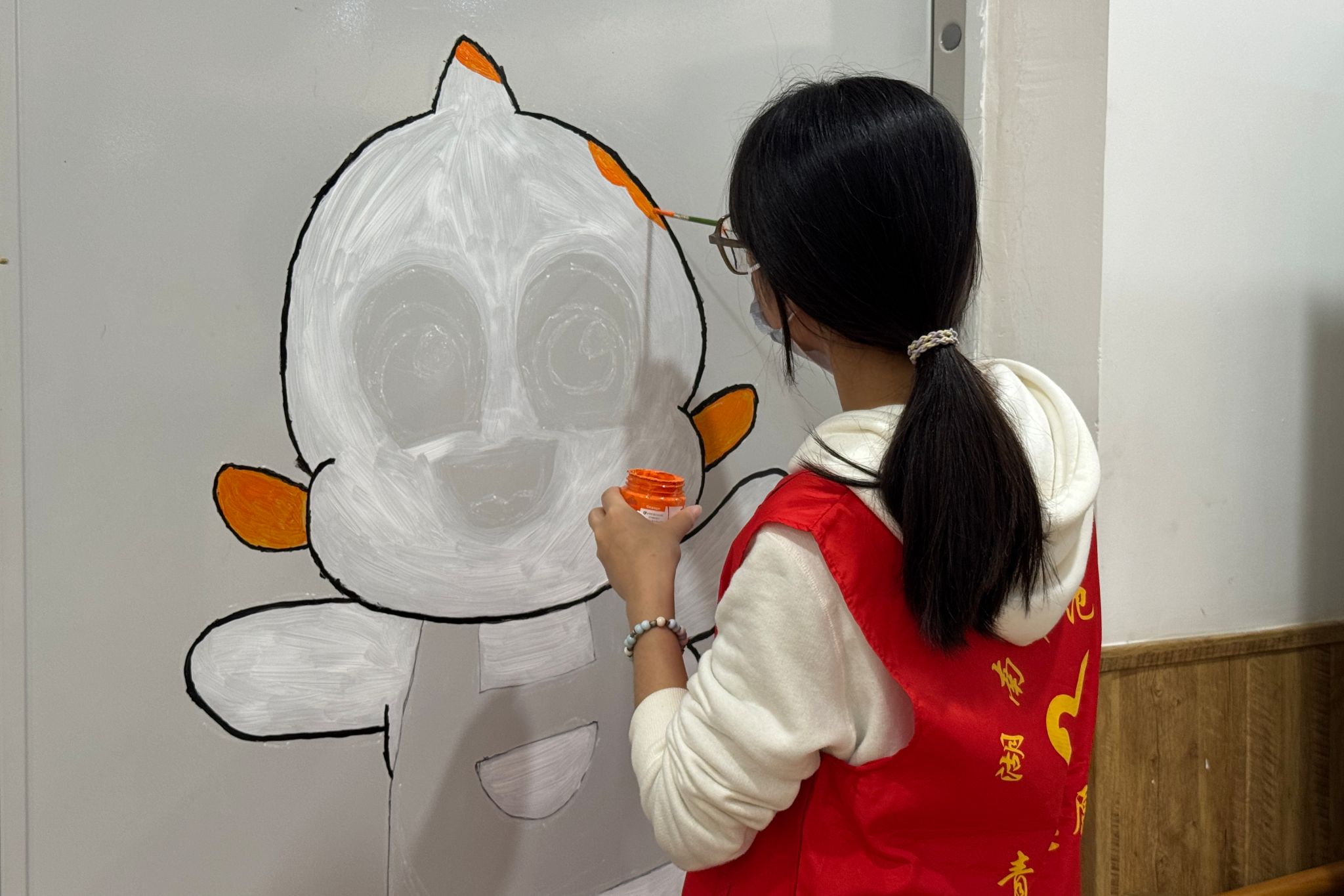 志愿者绘制主题墙画