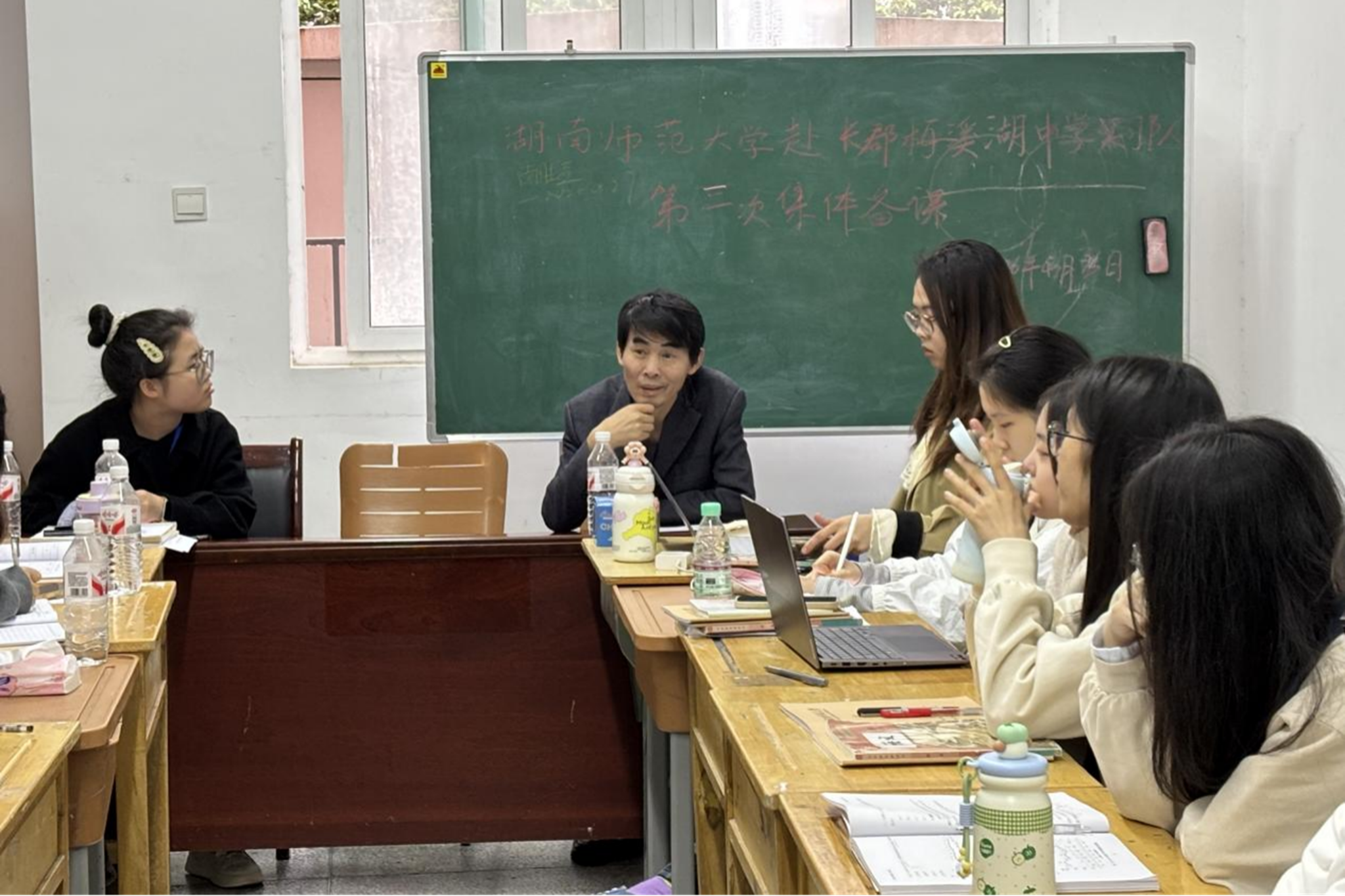 (通讯员 林佳丽 程启慧)4月14日上午,文学院2023级赴长郡梅溪湖中学实习队在初一一楼办公室开展听课评课会议,带教老师易礼芳和队伍指导老师李作霖进行评课,全体实习队员参与会议。