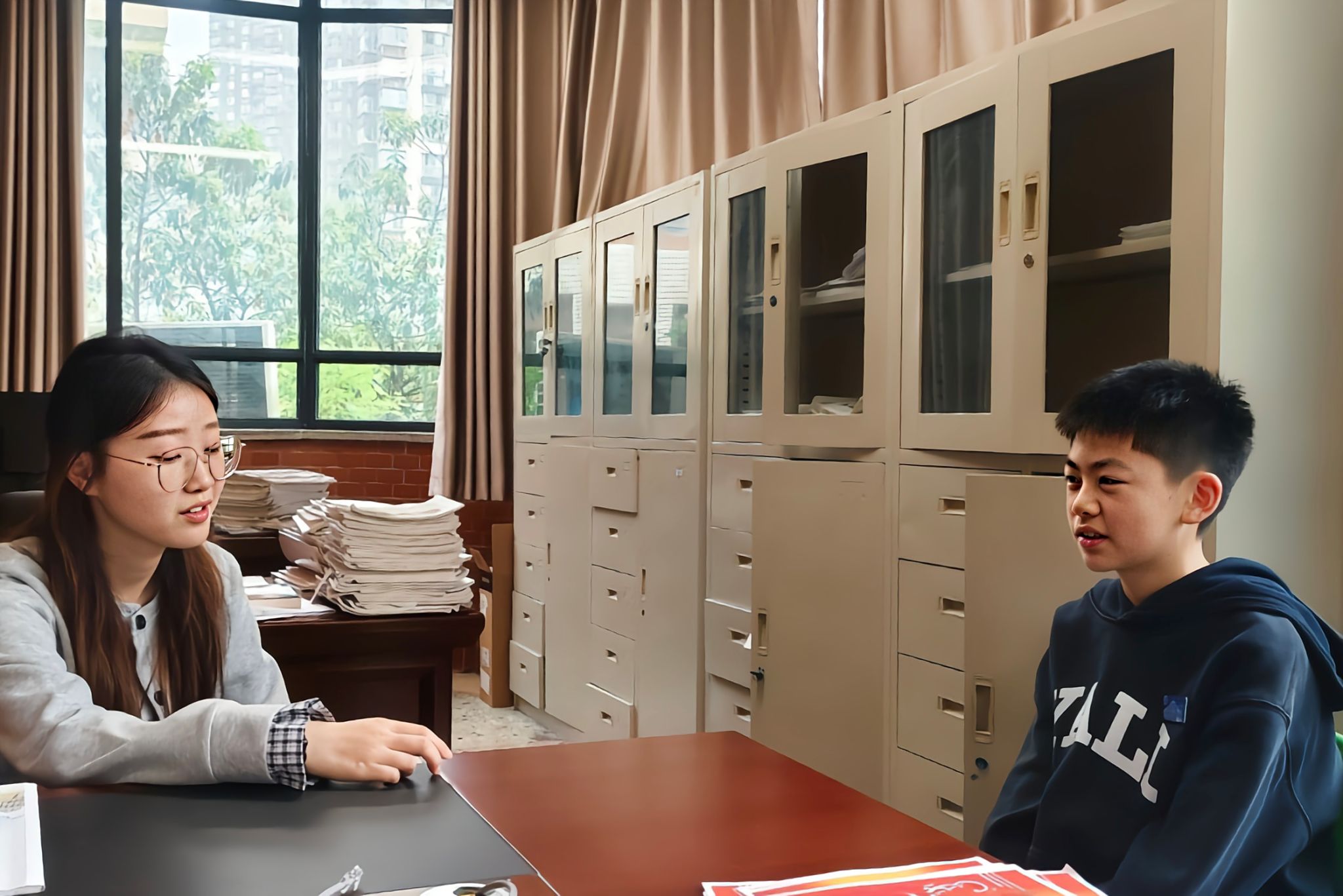 实习班主任与学生谈心交流
