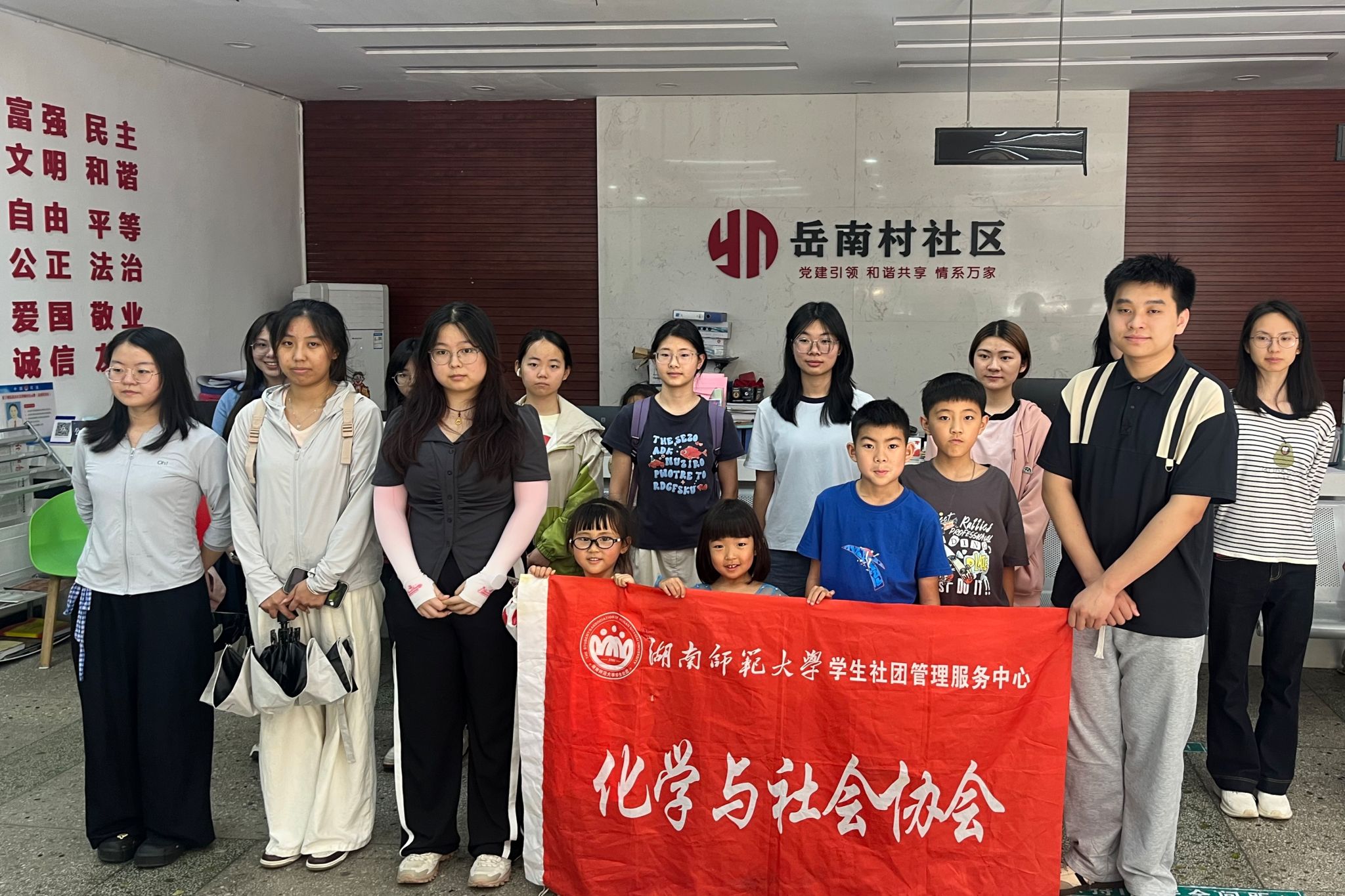 (通讯员 伍斯宇 谭伟维)4月19日下午,化学化工学院(以下简称“化工院”)化学与社会协会在岳南村社区开展“化润童心,科普筑梦”之苹果汽水和变色龙实验活动。社团理事会成员与15名会员分工协作,与社区小朋友共同参与。