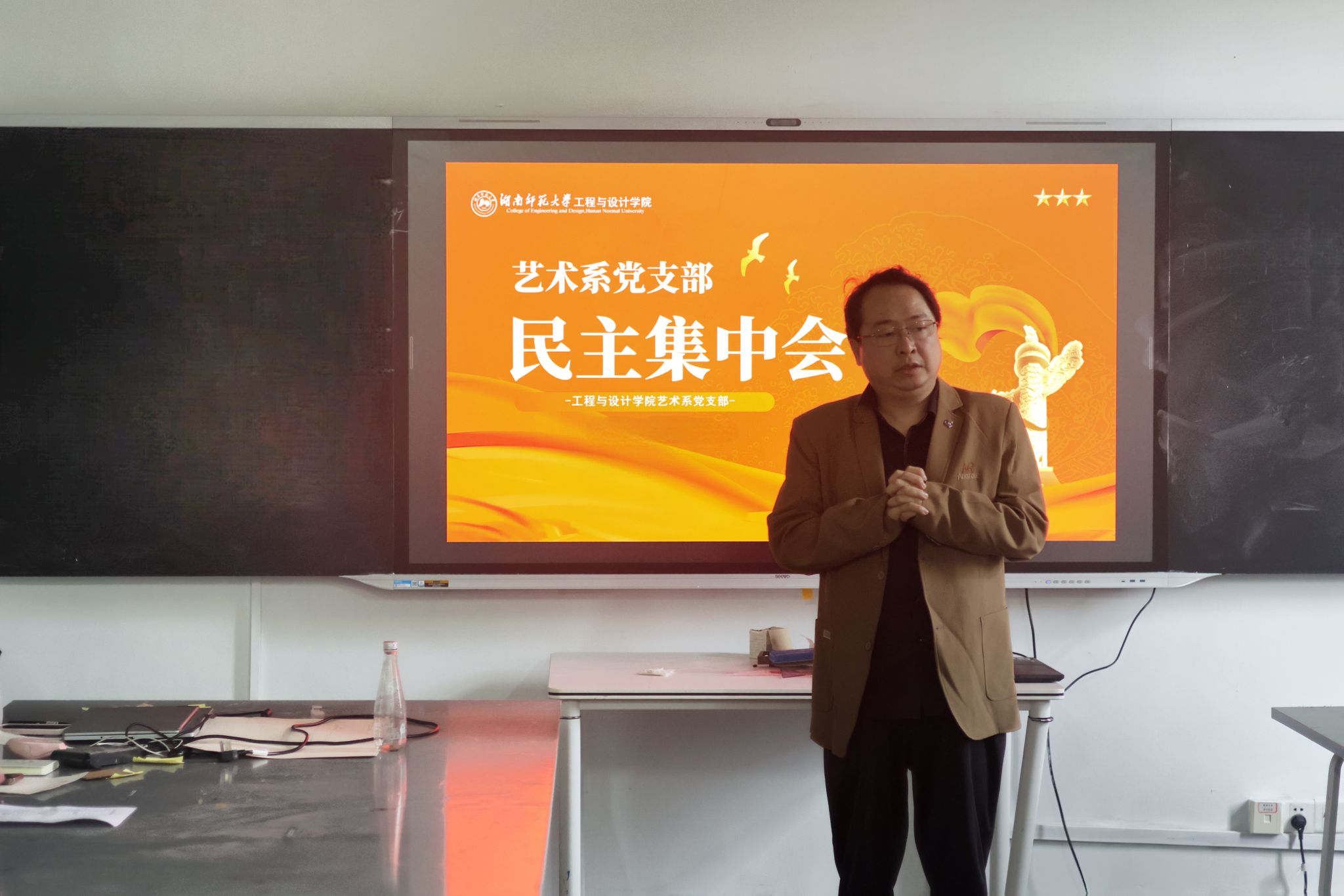 (通讯员 李玲珍)4月21日中午,工程与设计学院(以下简称“工设院”)艺术设计系党支部在学院前栋507教室召开民主集中会。各班入党积极分子、发展对象、预备党员及正式党员参加会议。院团委书记张杜豆参加会议,党支部教师代表沈竹、王巍主持交流环节。