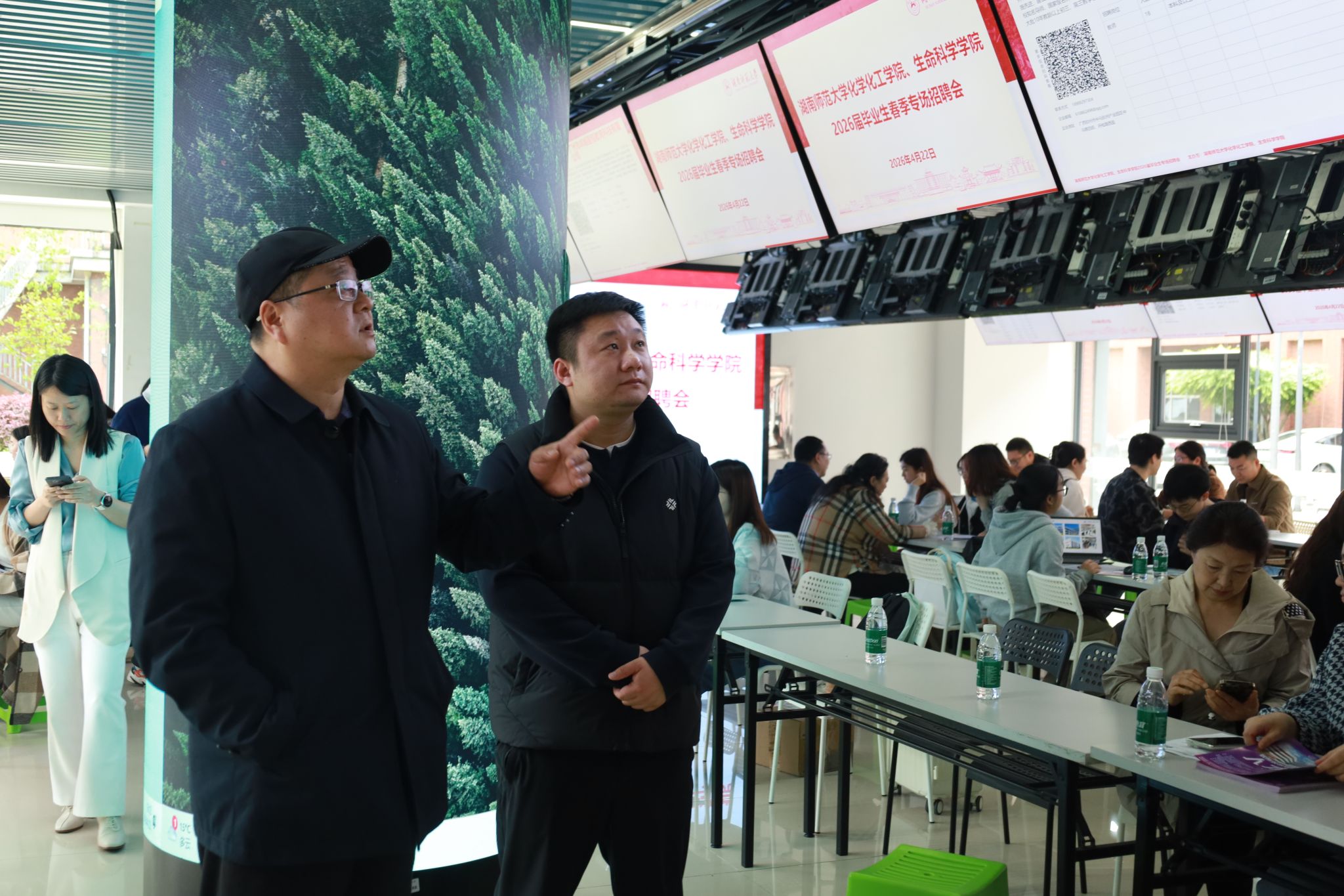 党委副书记彭赛丰与老师周冲现场指导招聘会工作