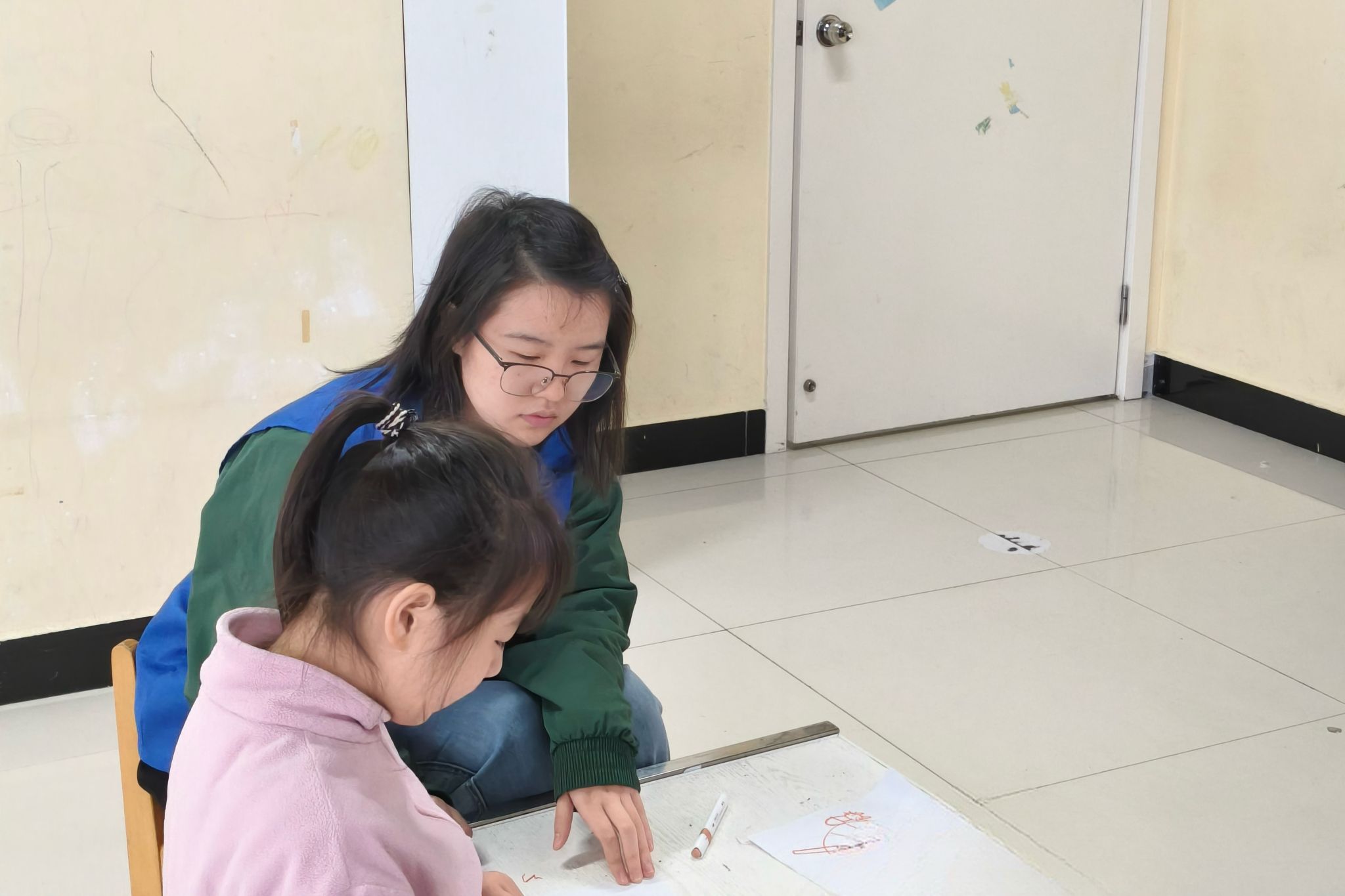志愿者手把手引导儿童